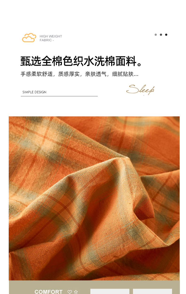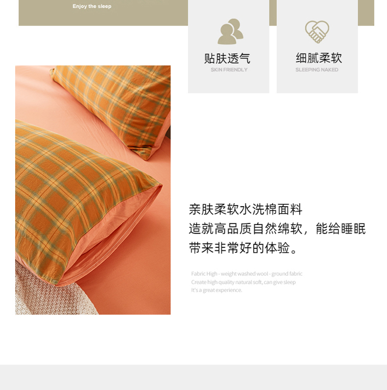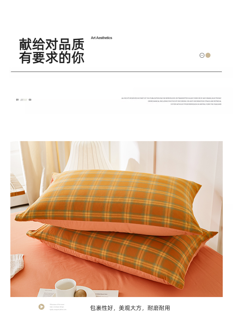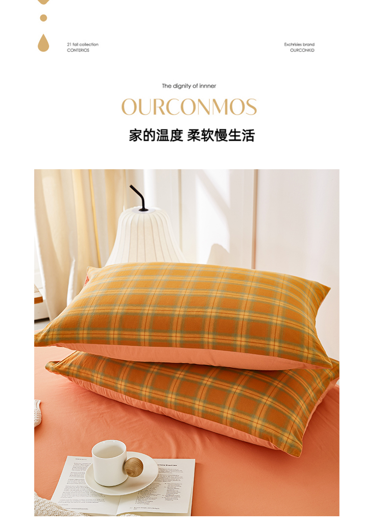 商品名称:凡客家居 2024新款全棉色织水洗棉枕套 漫彩—橘