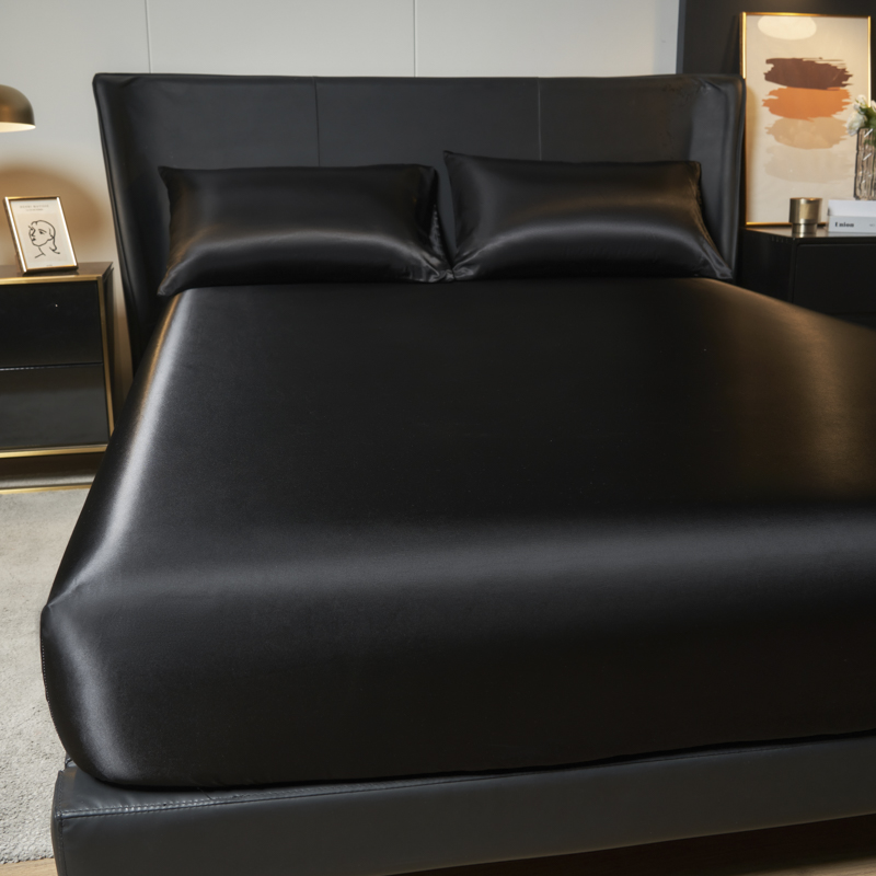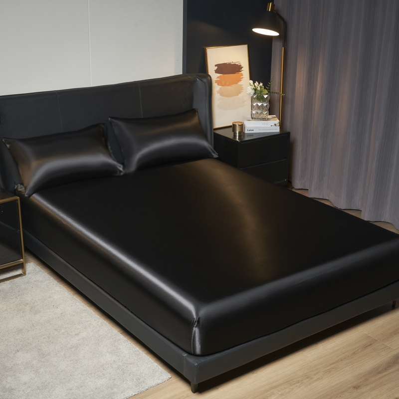 商品名称:闲鱼家纺 2025新款轻奢款跨境外贸可定制色丁床笠(非质量问题 不退不换) 黑色