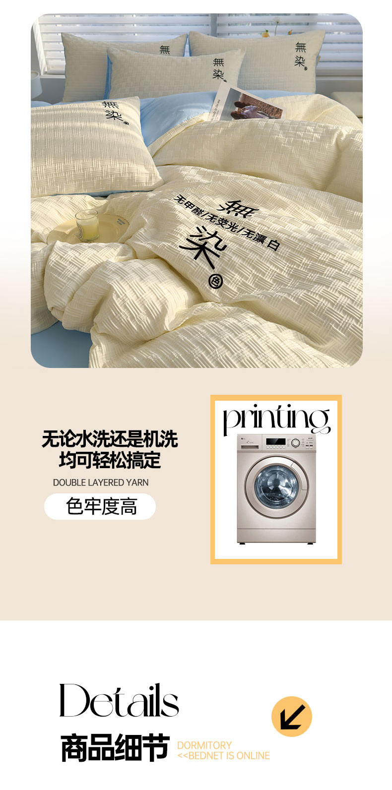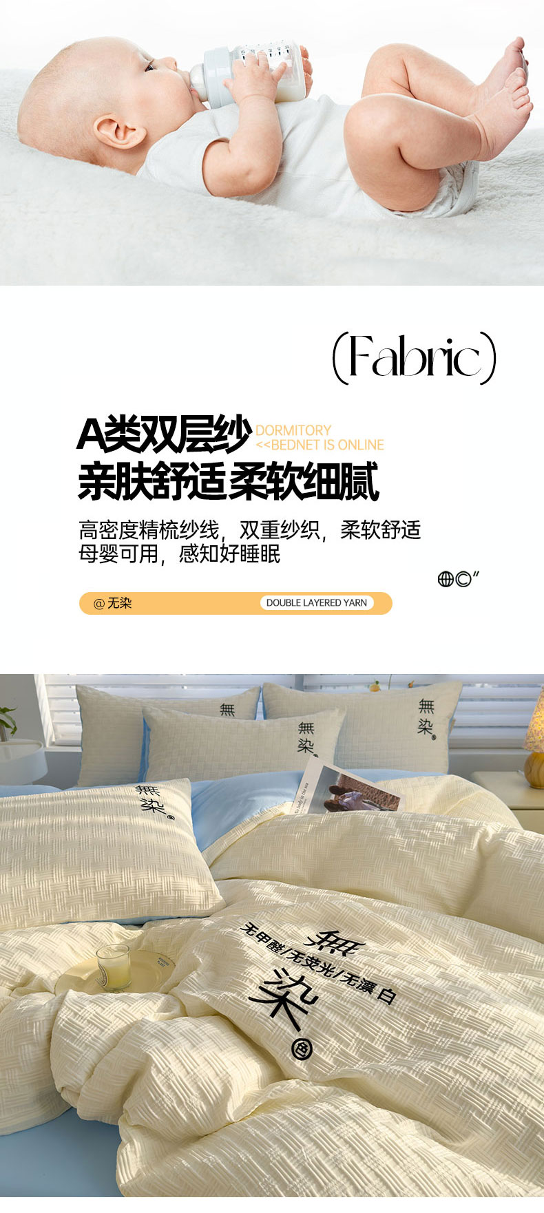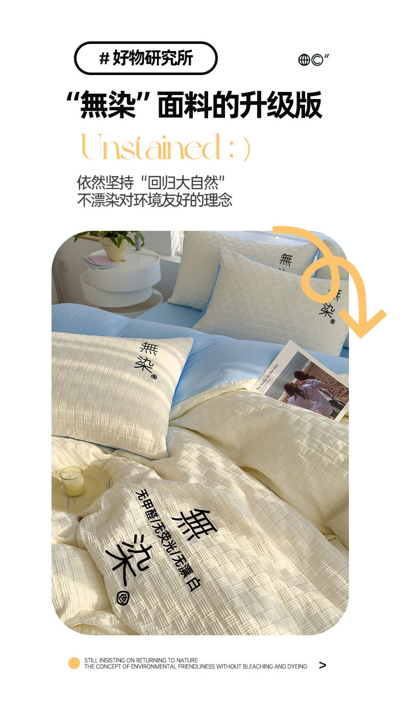当前位置: 91家纺网 > 商品网购 > 床品套件 > 四件套 > 提花四件套 > 灰鲸 2025新款A类双层纱无染提花四件套 无染-奶白天空蓝双拼