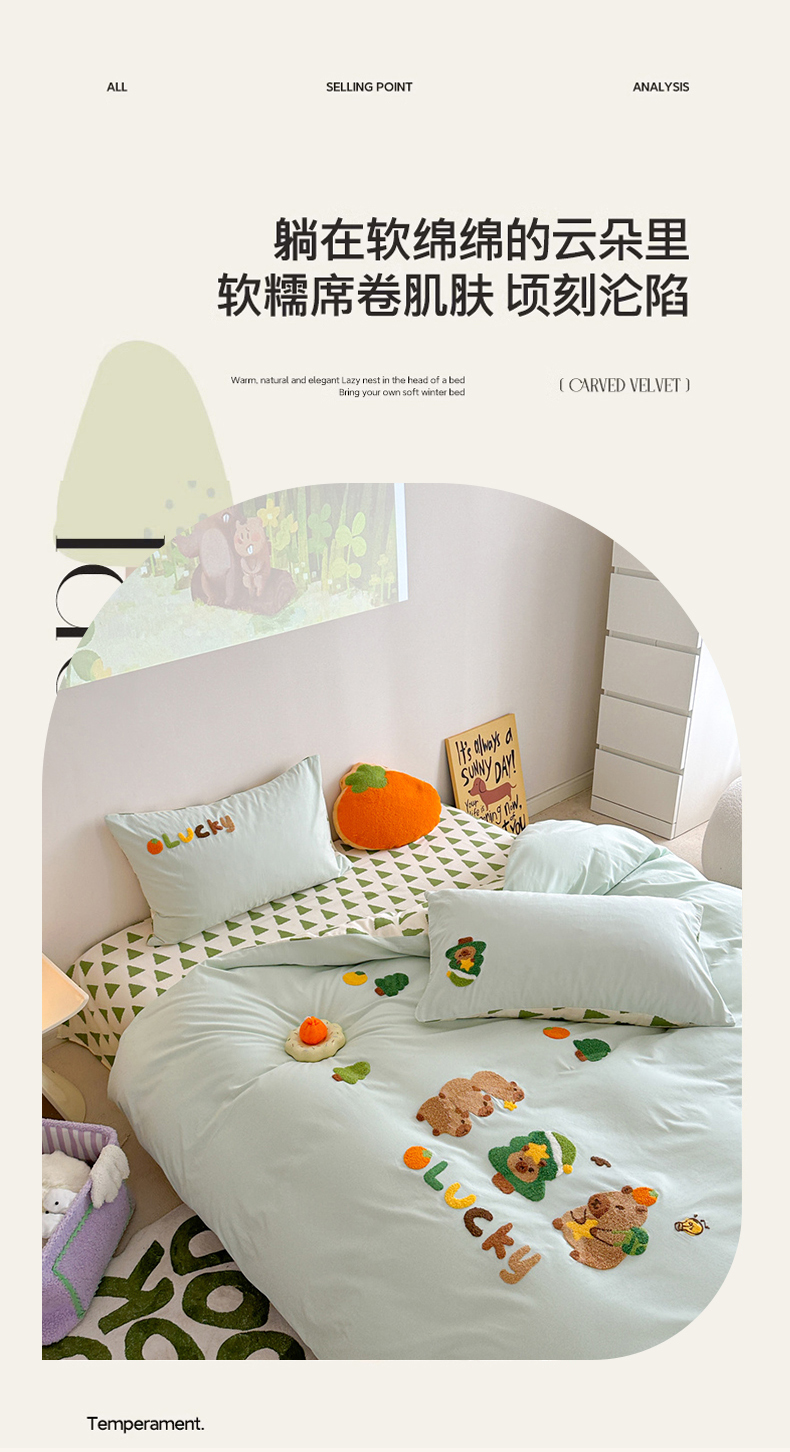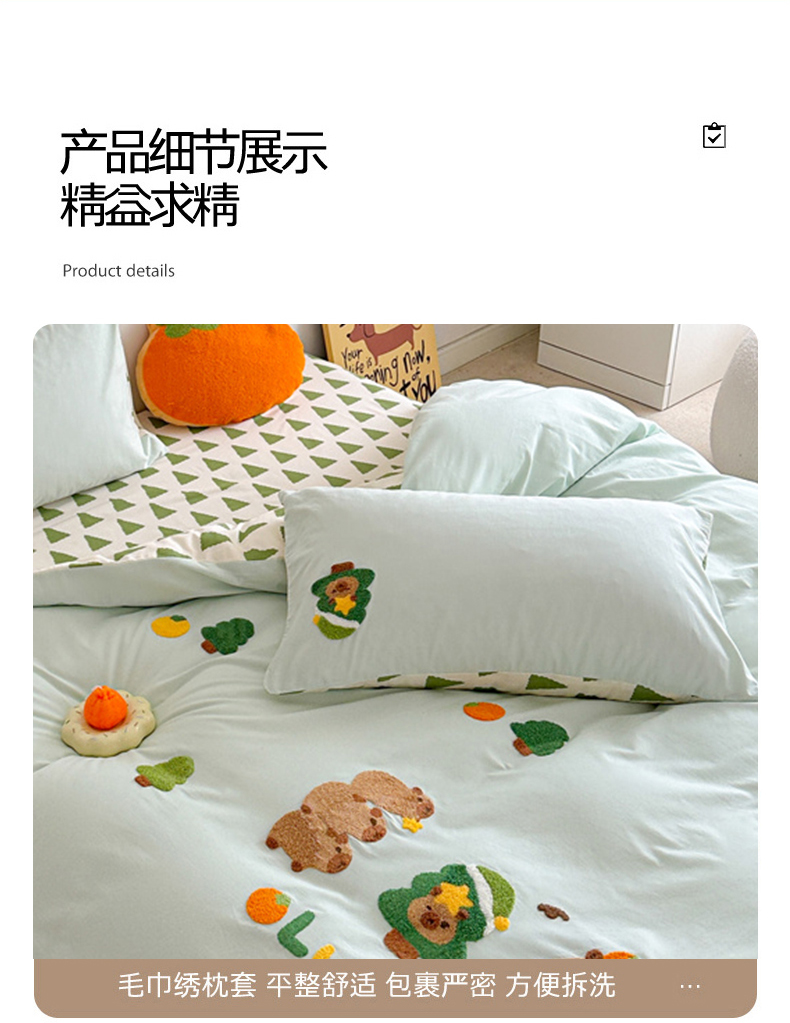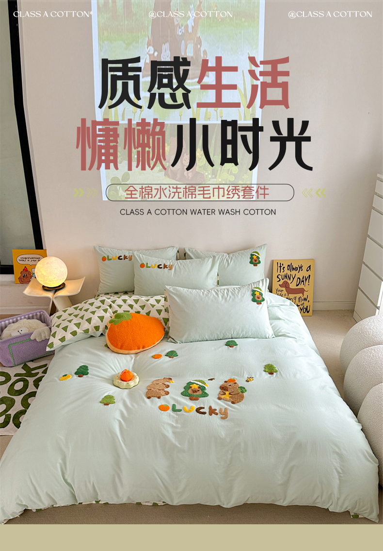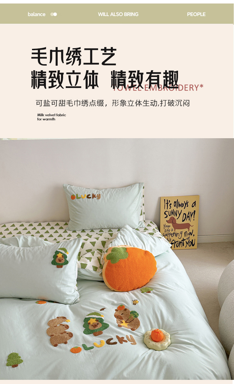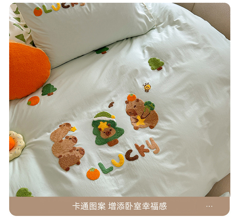 商品名称:眠屿 2024新款A类全棉40支水洗棉毛巾绣四件套 卡皮巴拉