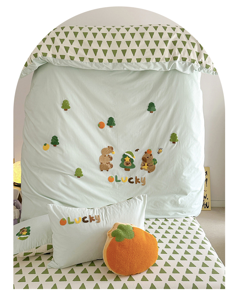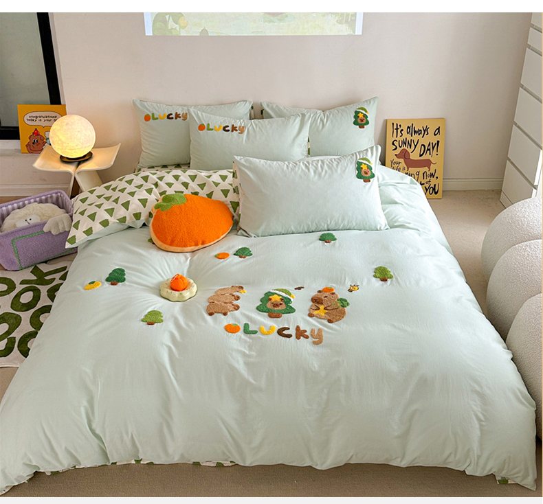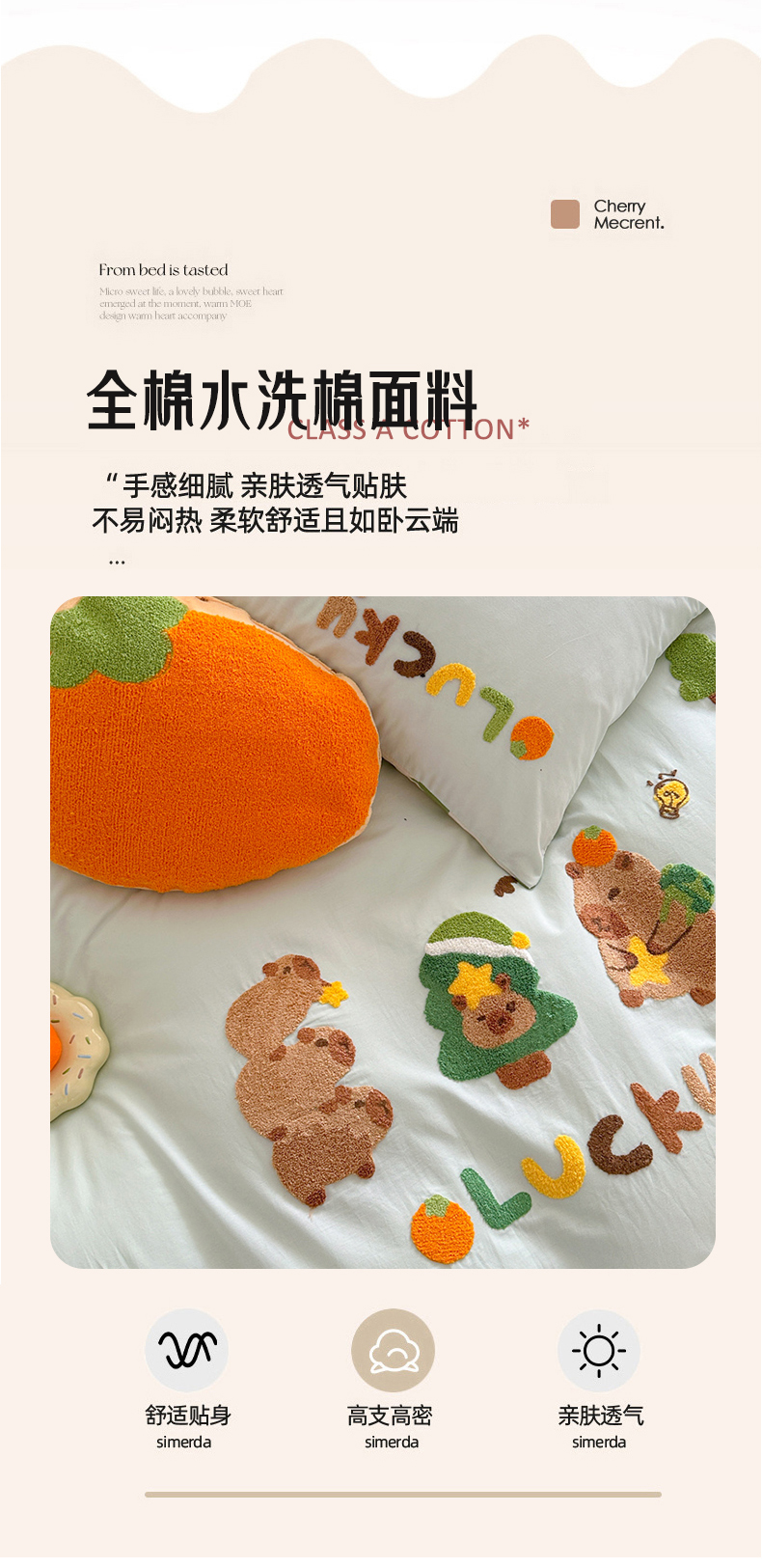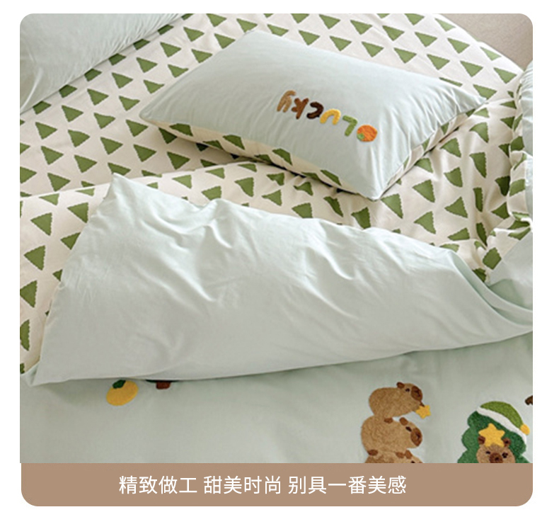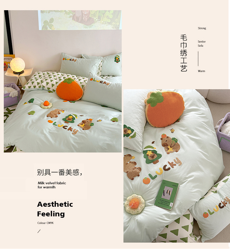 商品名称:眠屿 2024新款A类全棉40支水洗棉毛巾绣四件套 卡皮巴拉