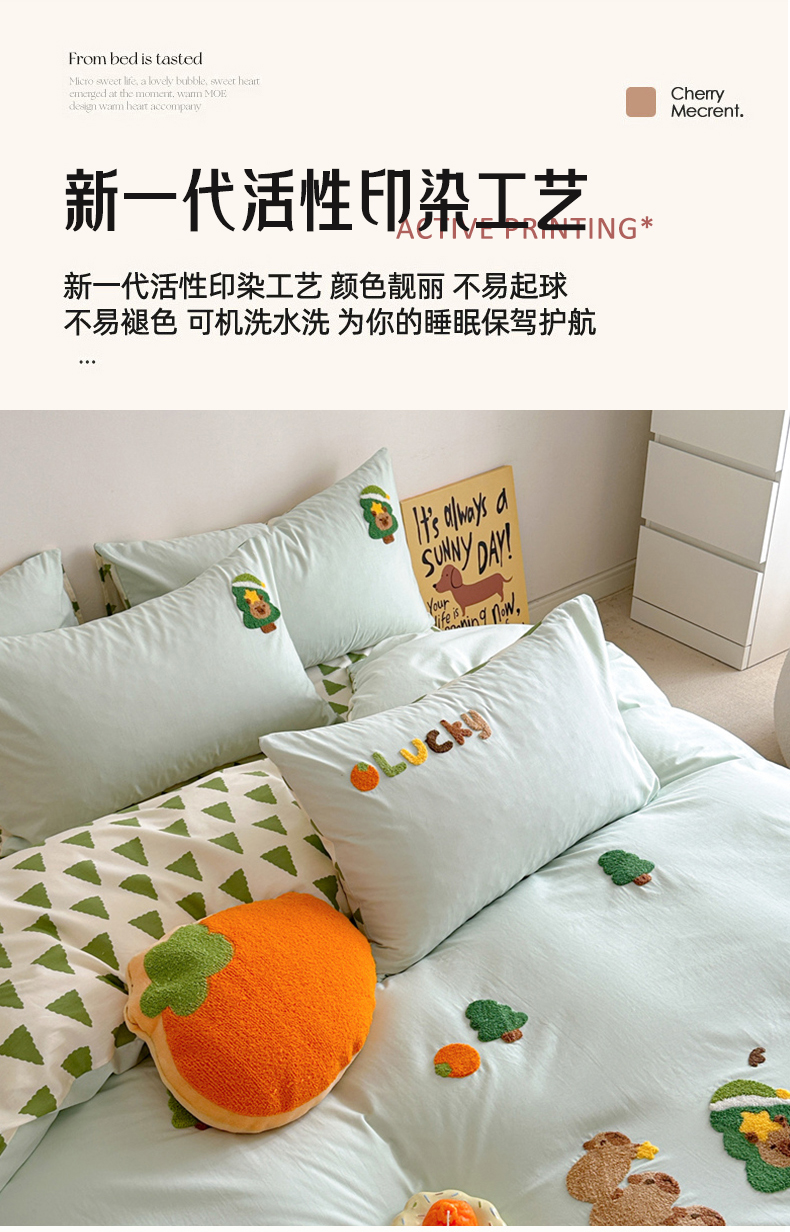 (总)眠屿家纺 2025新款全棉秋冬磨毛贴布绣四件套,爱心猫咪,蛋糕狗狗,可爱玩偶,热量100%