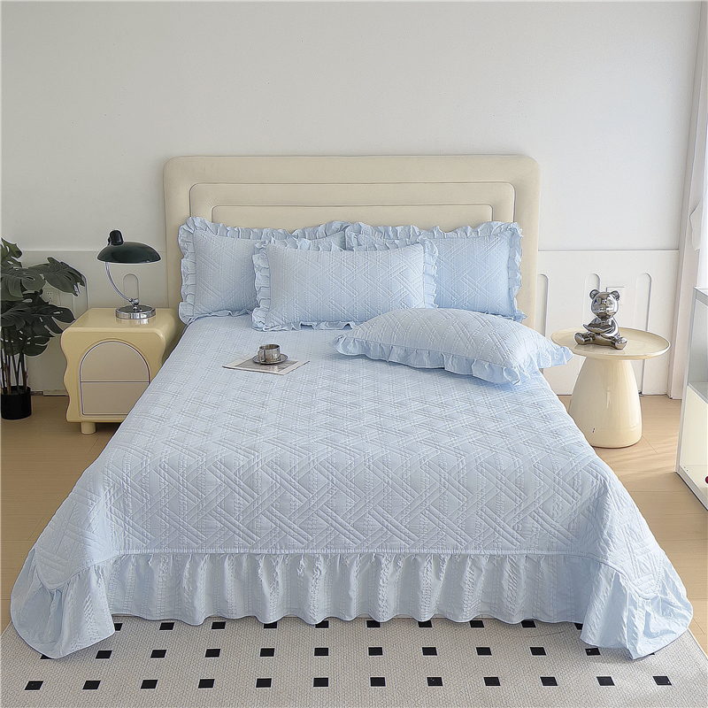 十个点 2024新款软糯舒适水洗泡泡棉夹棉床盖款单品及套件 天蓝
