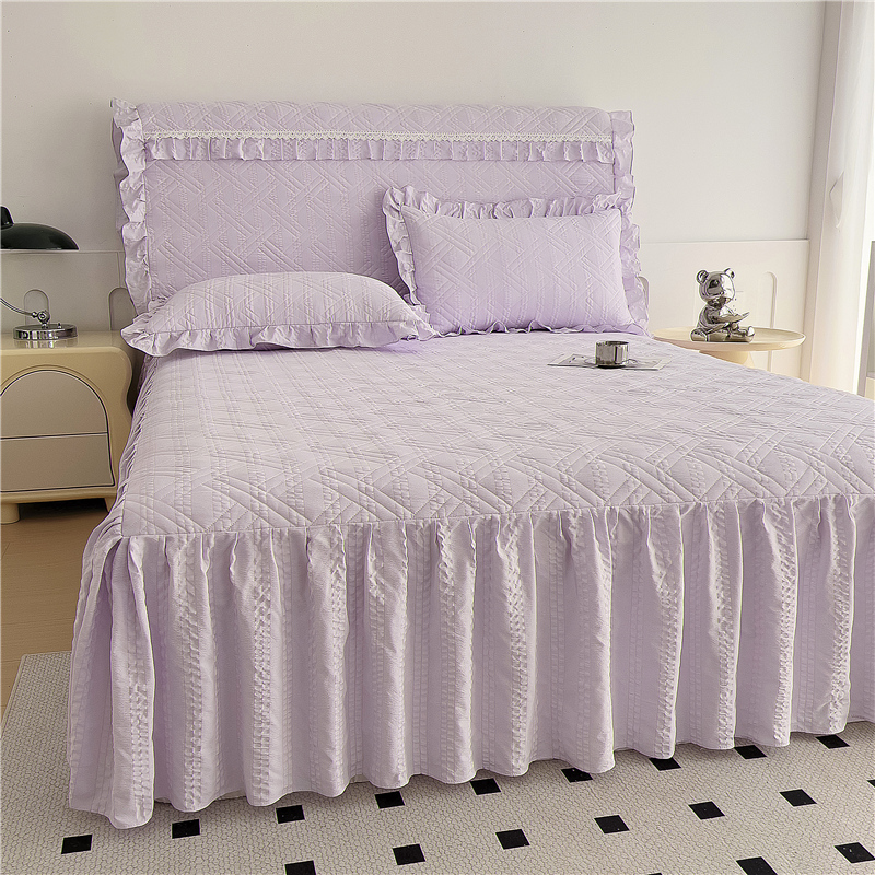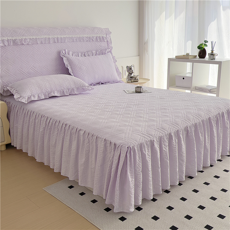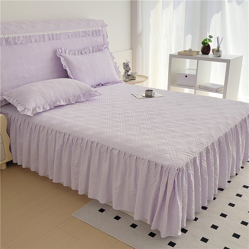 2024新款亲肤水洗泡泡棉夹棉绗缝床裙款单品及套件 媚紫
