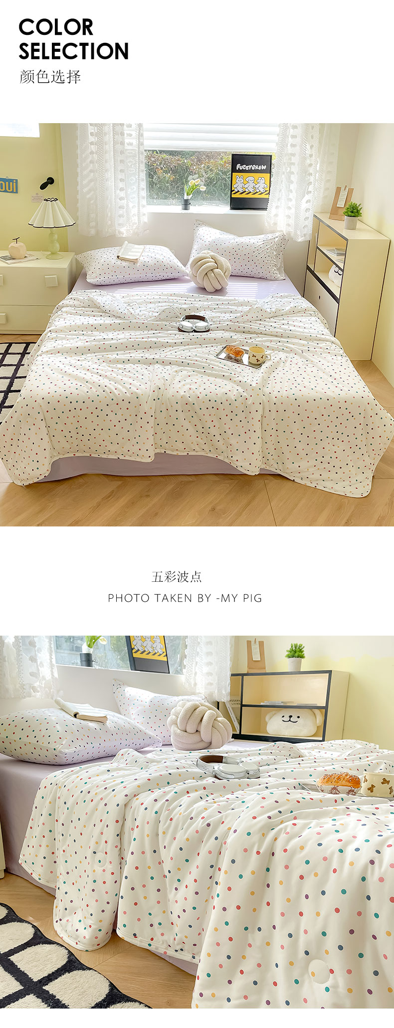 商品名称:Mr.pig猪先生水洗棉 2024新款5A抗菌针织棉印花夏被 五彩波点