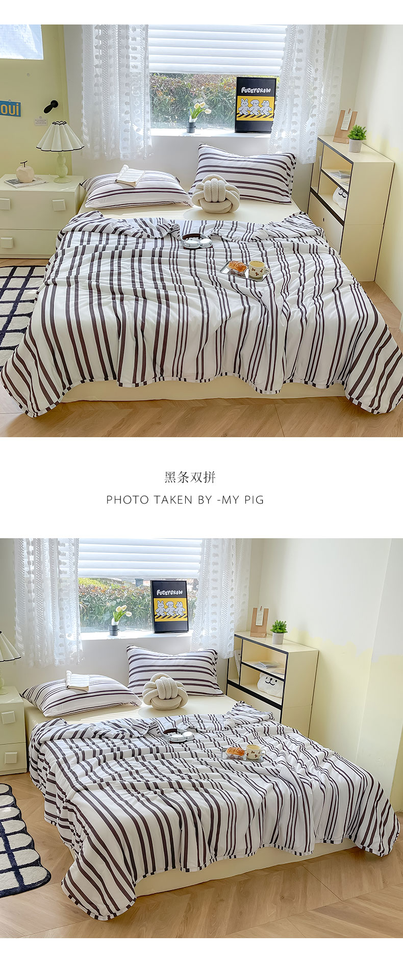 (总)Mr.pig猪先生水洗棉 2024新款5A抗菌针织棉印花夏被,复古黑条,黑条双拼,黄条,灰蓝波点,绿咖条,五彩波点,杏仁白波点