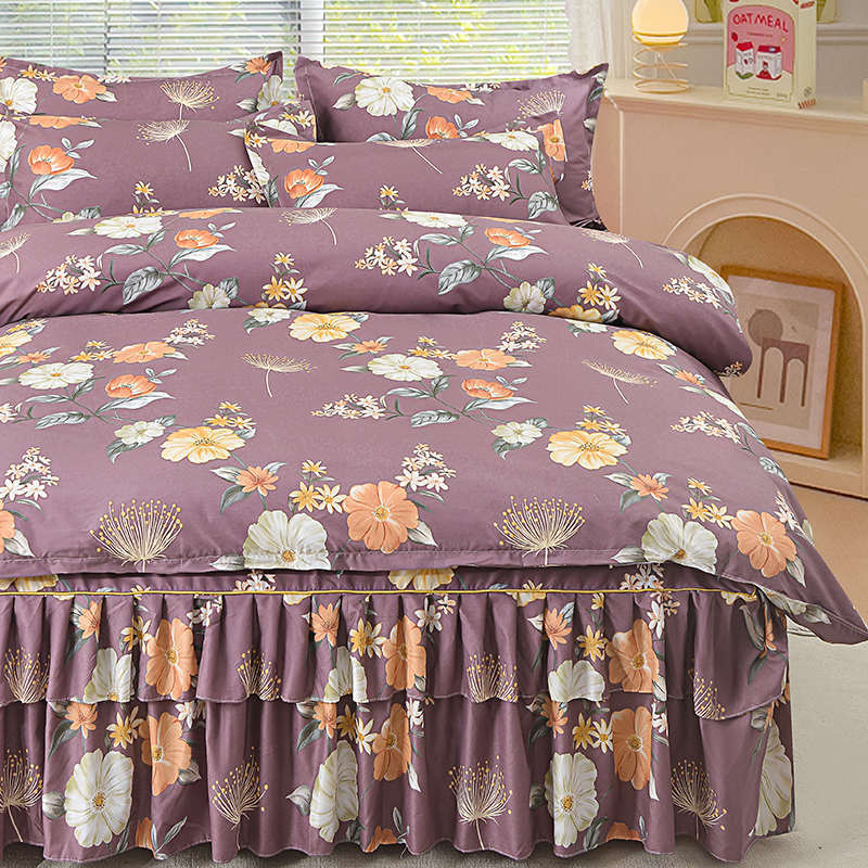 当前位置: 91家纺网 > 商品网购 > 床品套件 > 四件套 > 其它四件套 > 小雨家纺 2026新款芦荟棉床裙四件套 如花似锦-棕