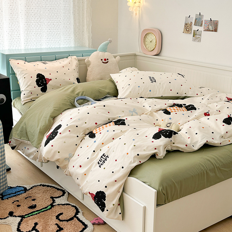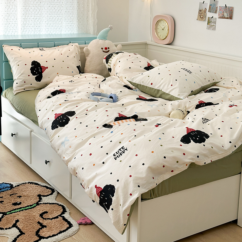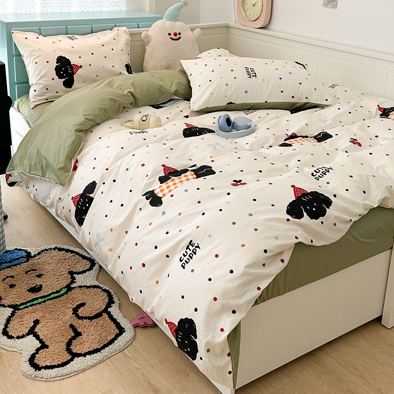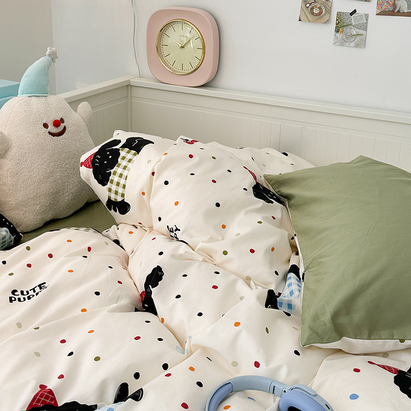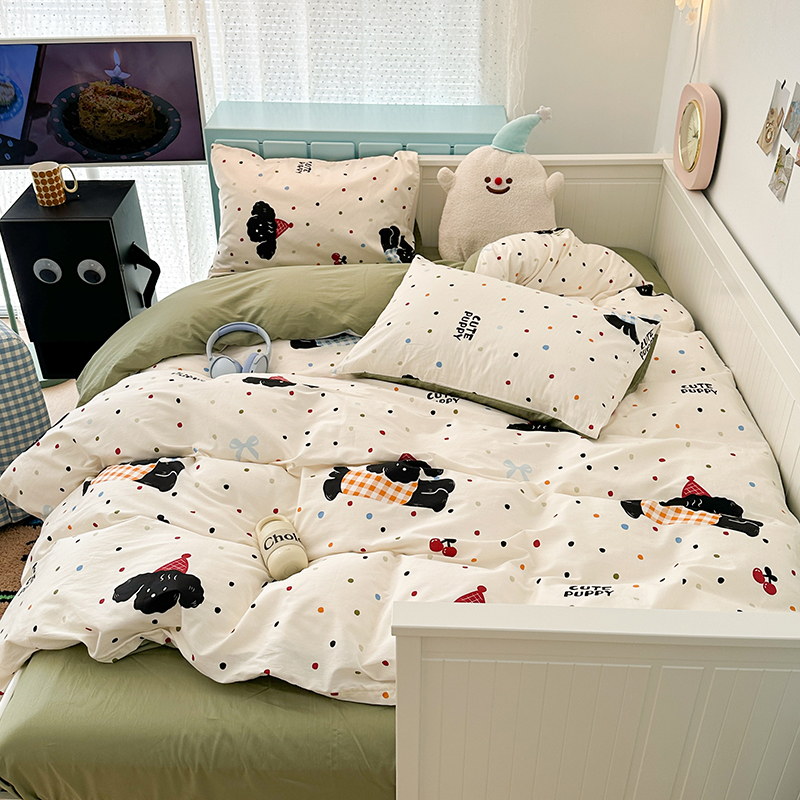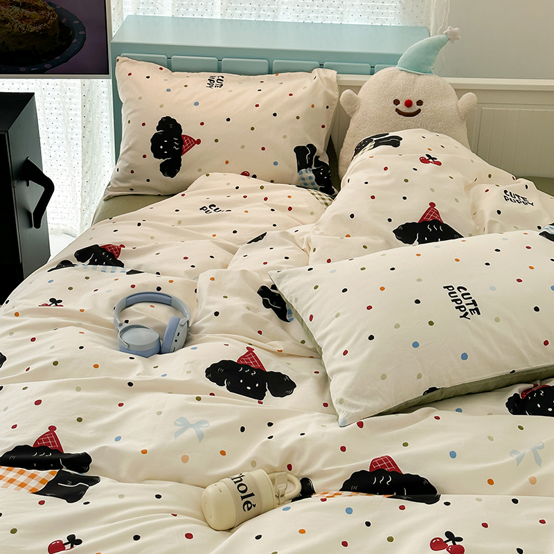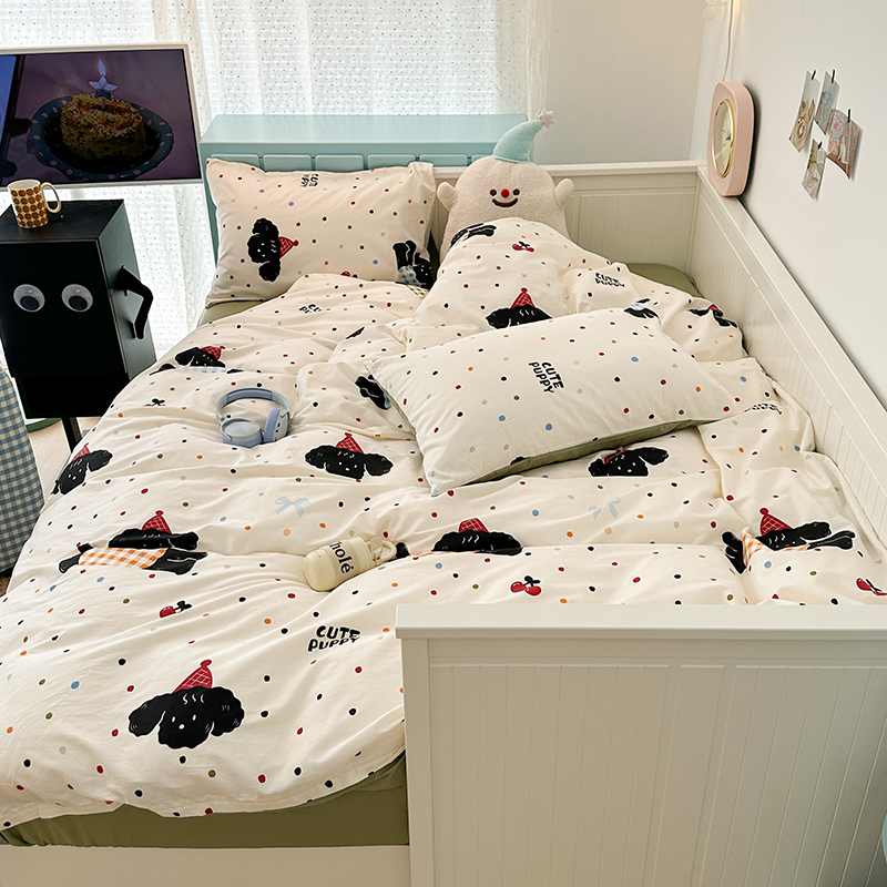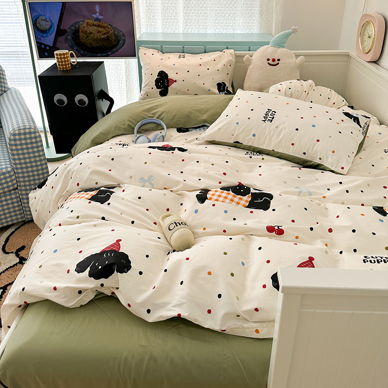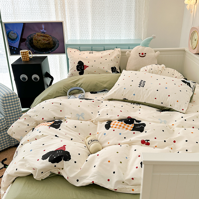昔可 新款多巴胺卡通简约风可爱亲肤四件套 哈皮狗狗