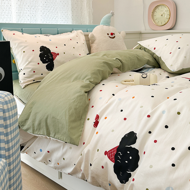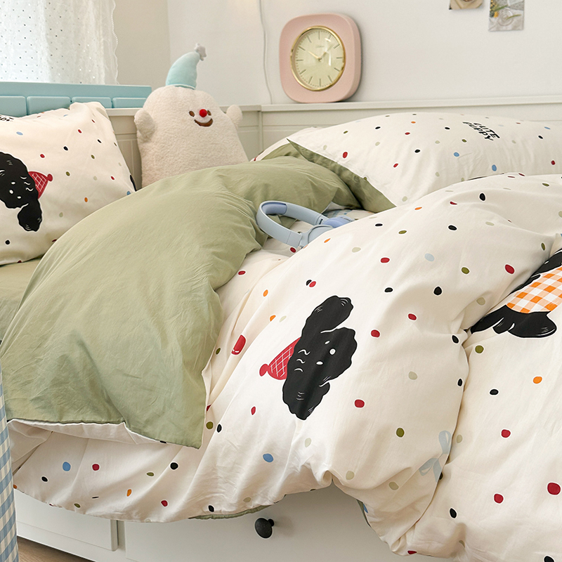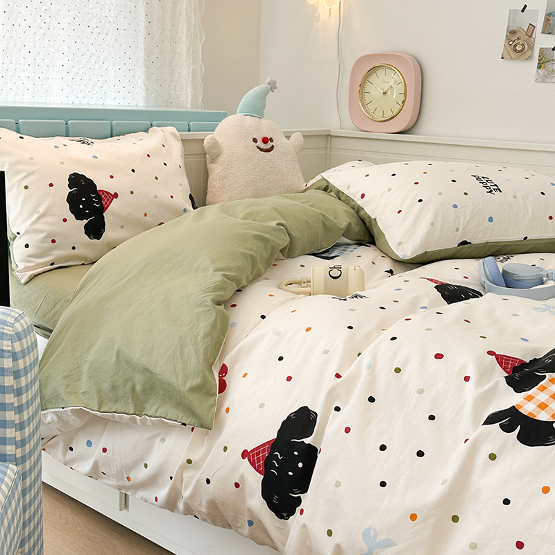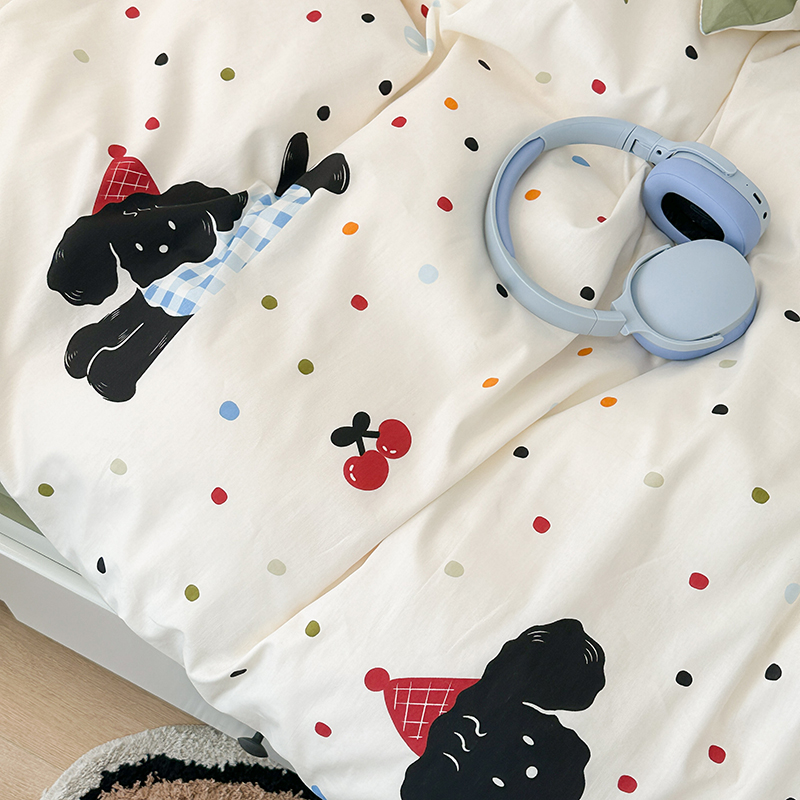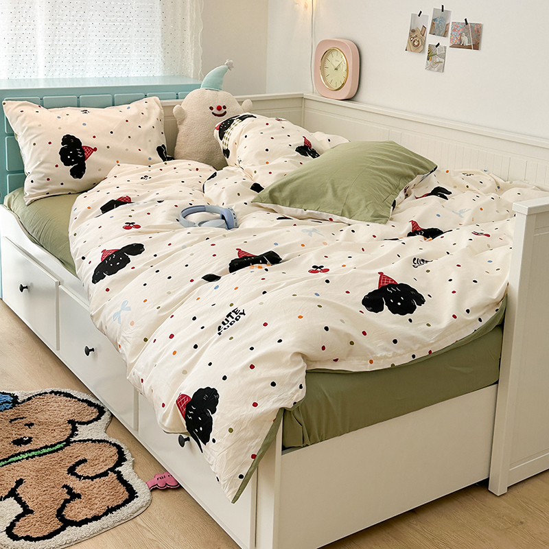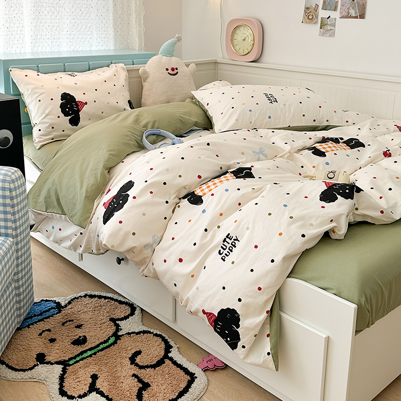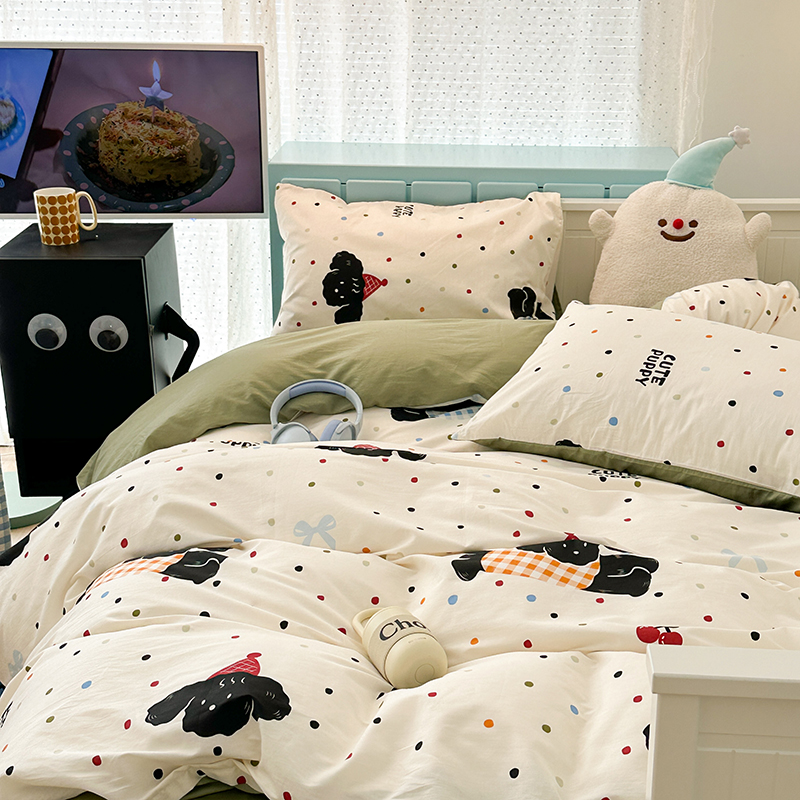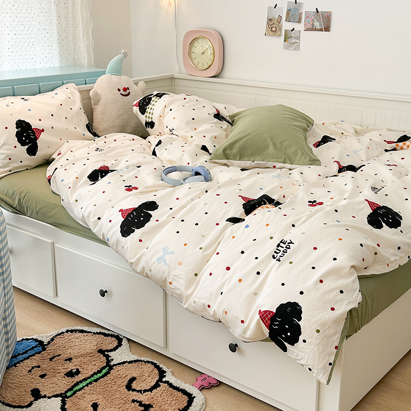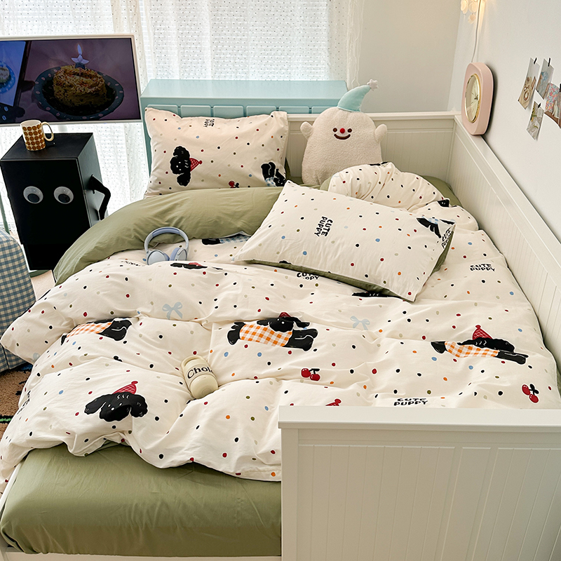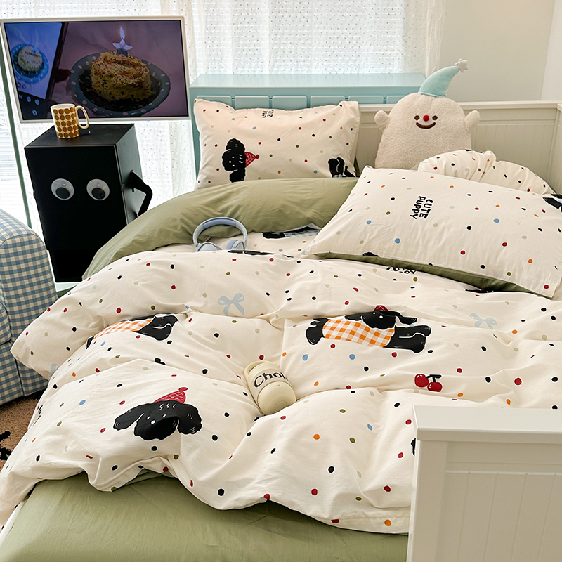 昔可 新款多巴胺卡通简约风可爱亲肤四件套 哈皮狗狗