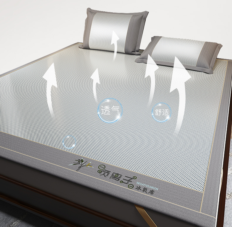 商品名称:宜派家纺 2024新款碳光绣花凉感冰藤席 素雅-银蓝