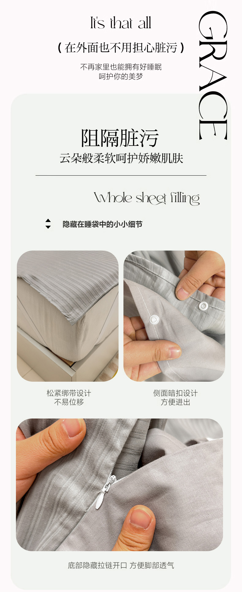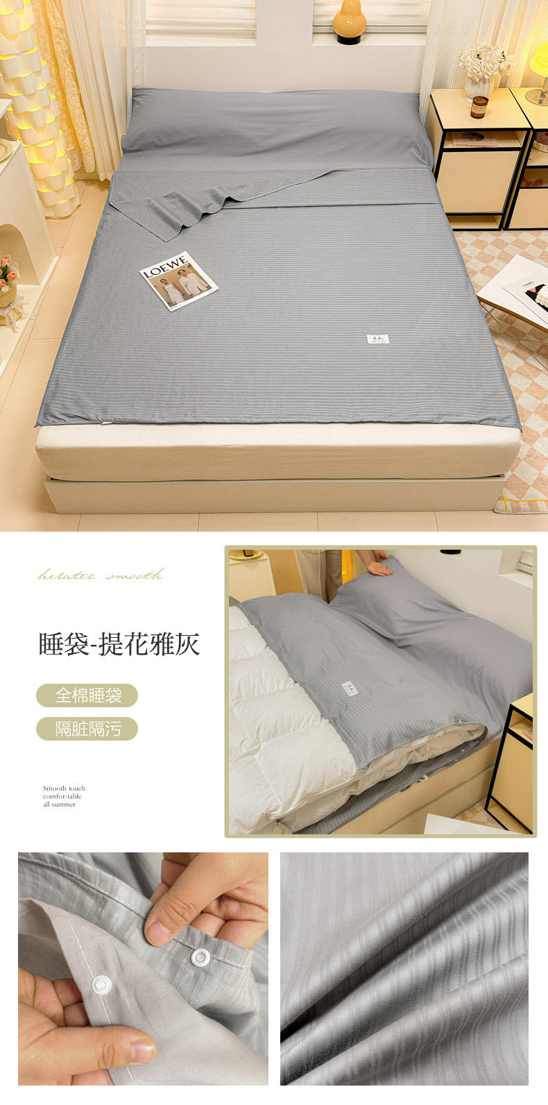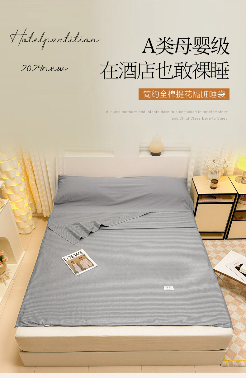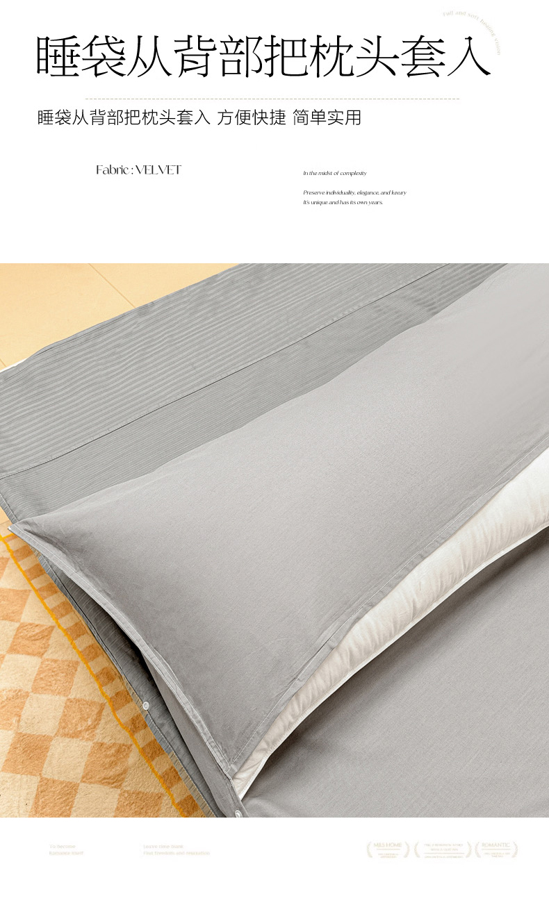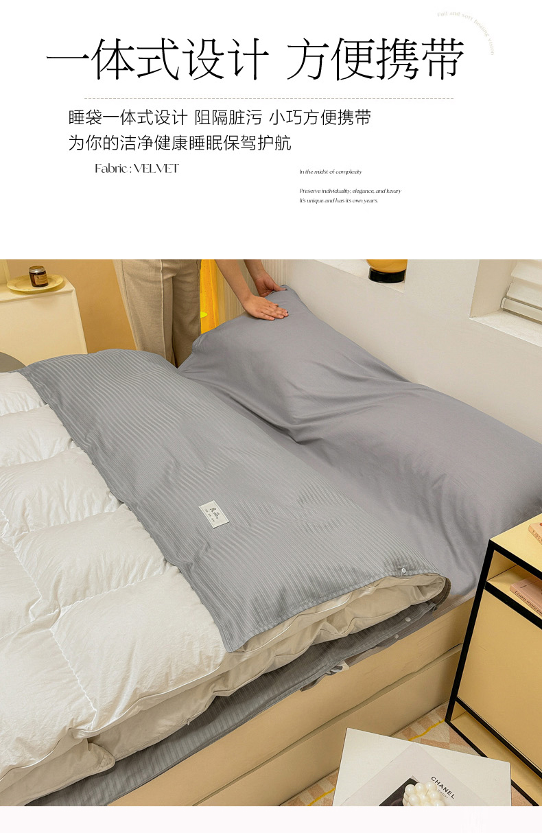 商品名称:眠博士 2024新款60贡缎提花 旅行睡袋场景一暖光 睡袋-提花雅灰
