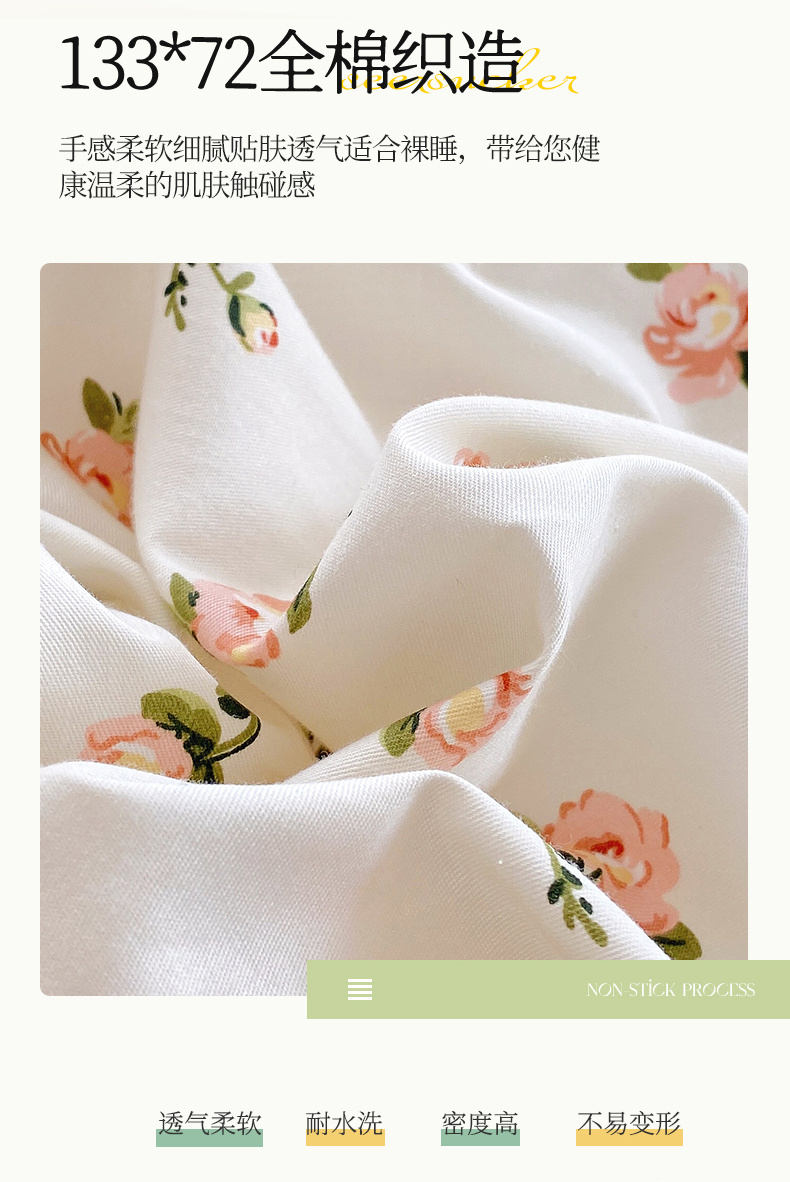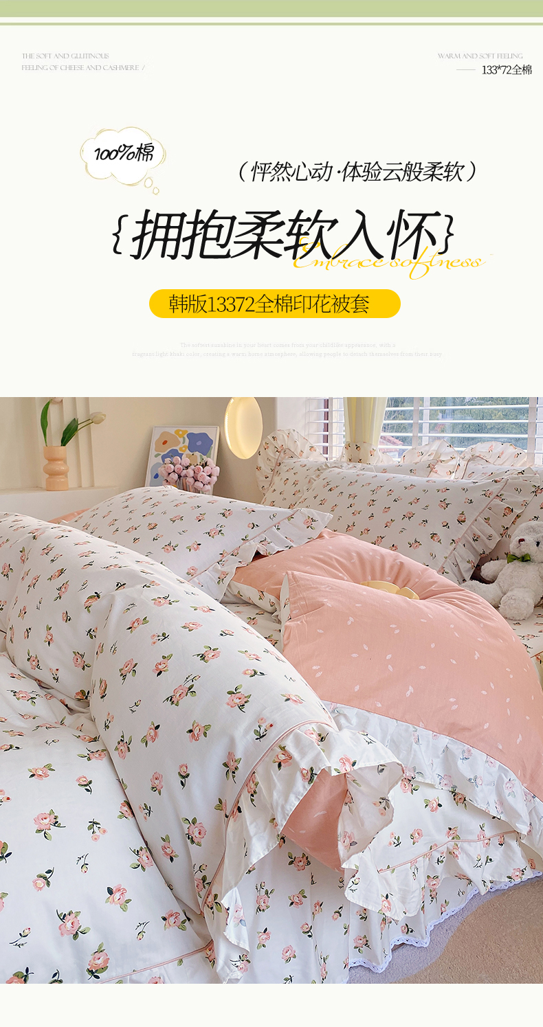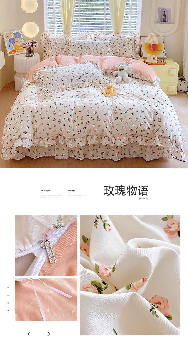 商品名称:宝齐莱2024新款全棉13372韩版印花四件套单品系列-单被套 玫瑰物语