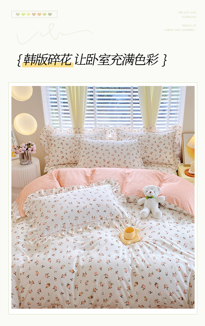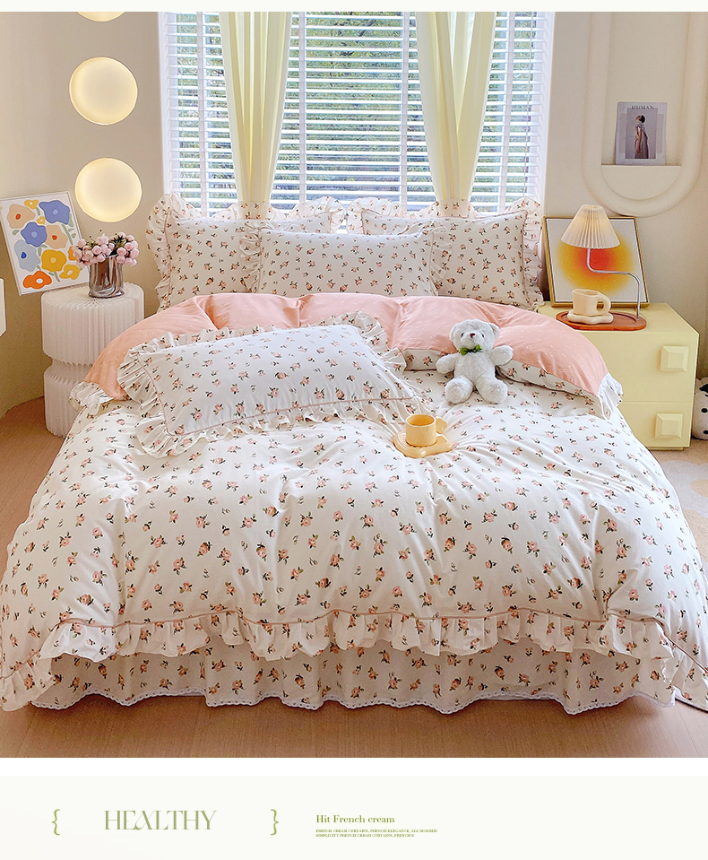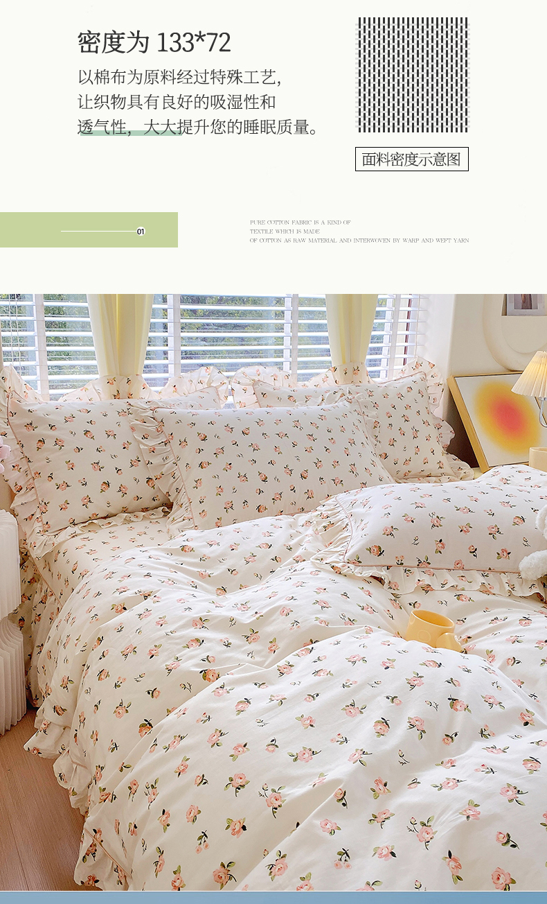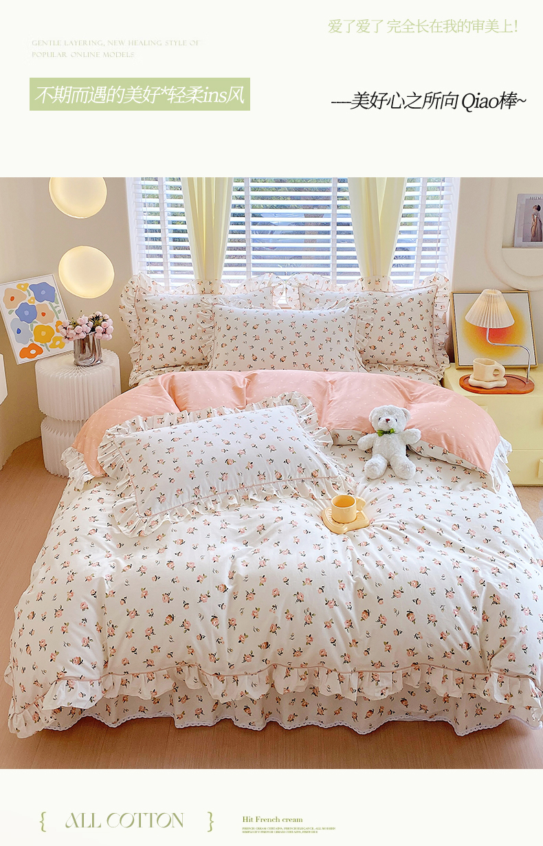 商品名称:宝齐莱2024新款全棉13372韩版印花四件套单品系列-单被套 玫瑰物语