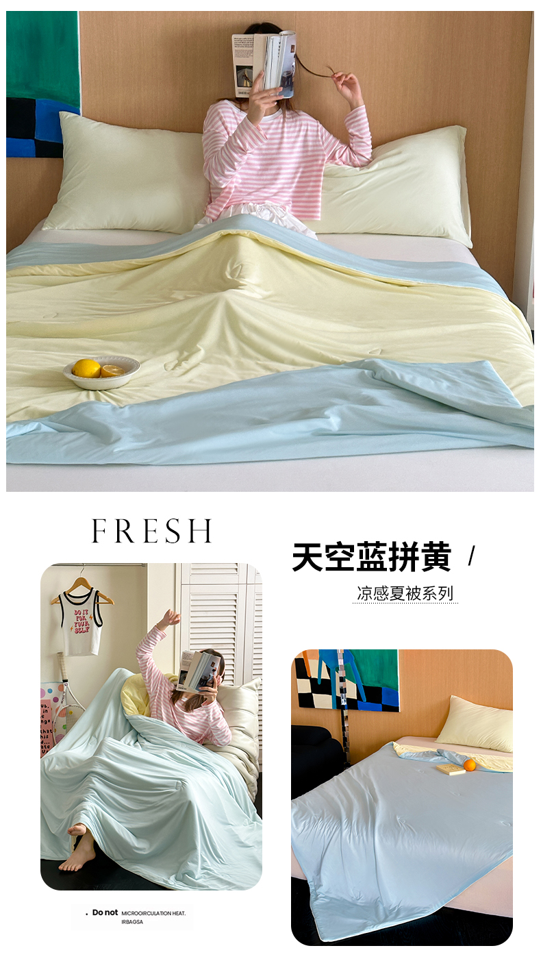 昔可家纺 2024新款冰淇淋瓜瓜夏凉被 天空蓝拼黄