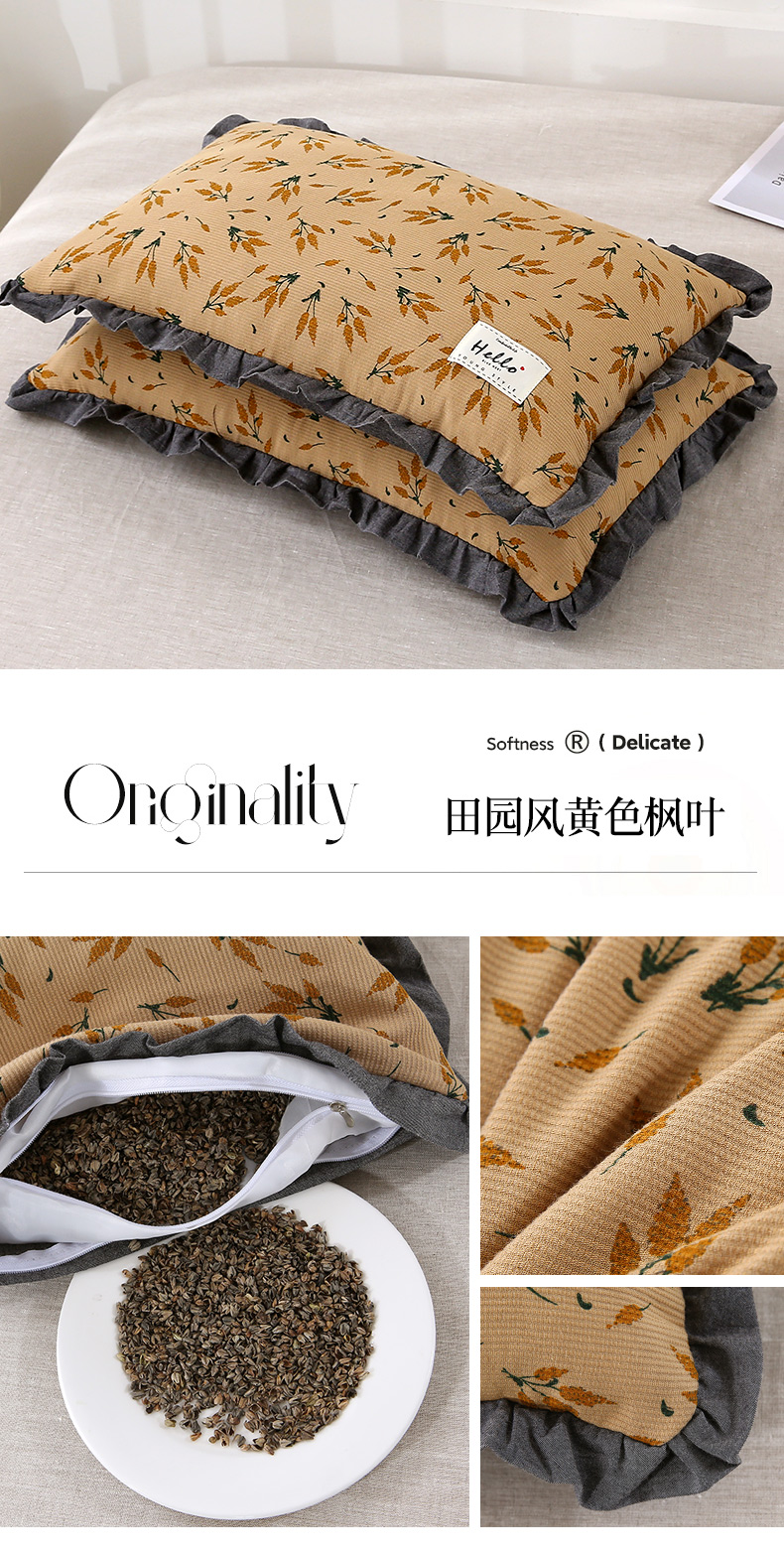 当前位置: 91家纺网 > 商品网购 > 枕头/枕芯/保健枕/颈椎枕 > 普通枕芯 > 梦叶草 2024新款枕芯全棉砂洗田园风系列荷叶边35×55cm全荞麦枕头 田园风黄色枫叶