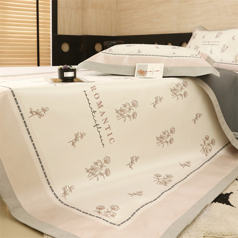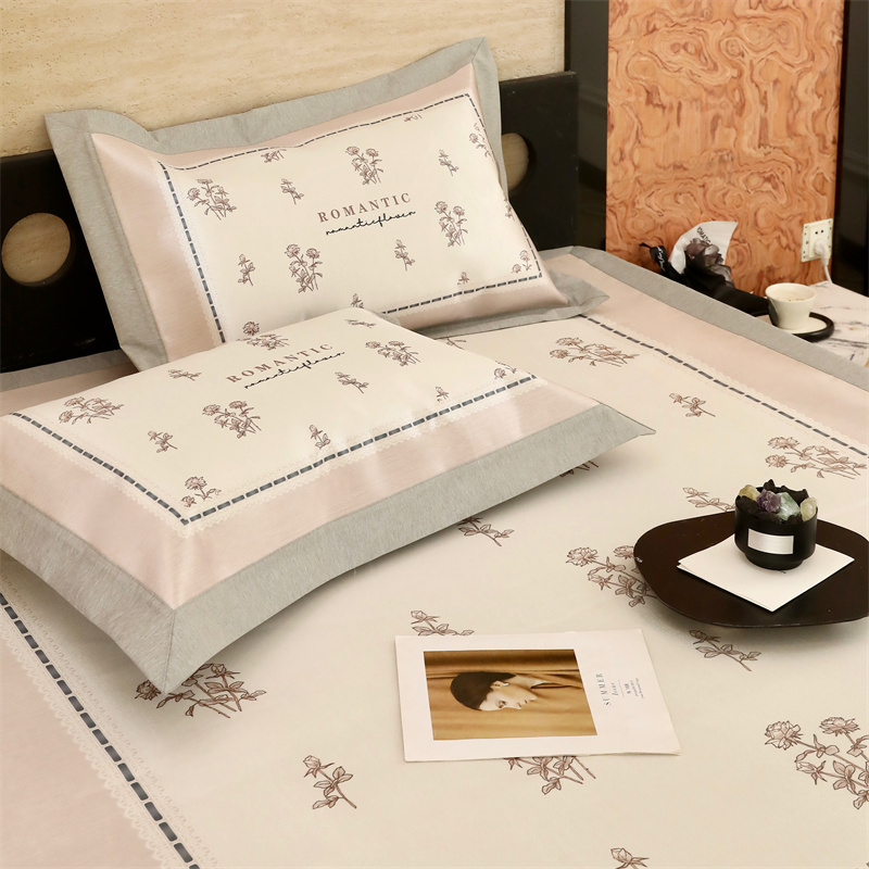 商品名称:橘滋 2024新款轻奢简约法式数码印花冰丝凉席-场景二 芮萩-粉