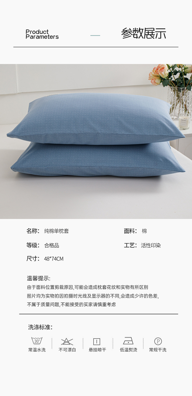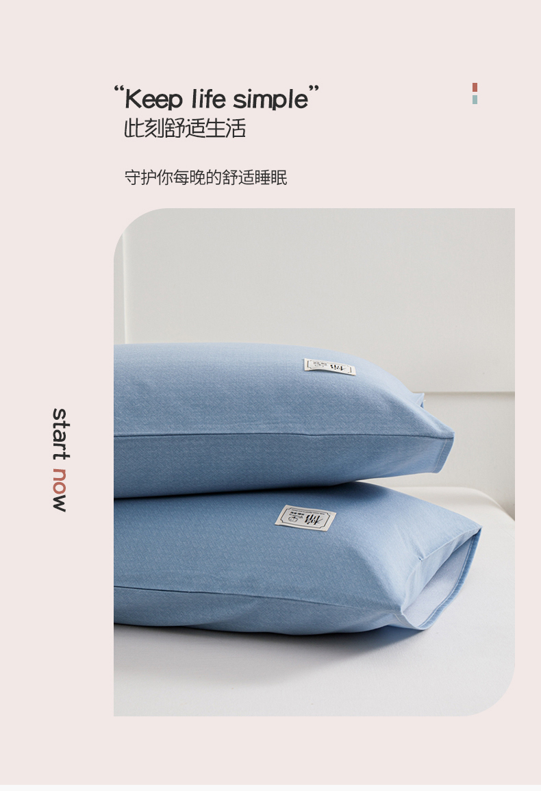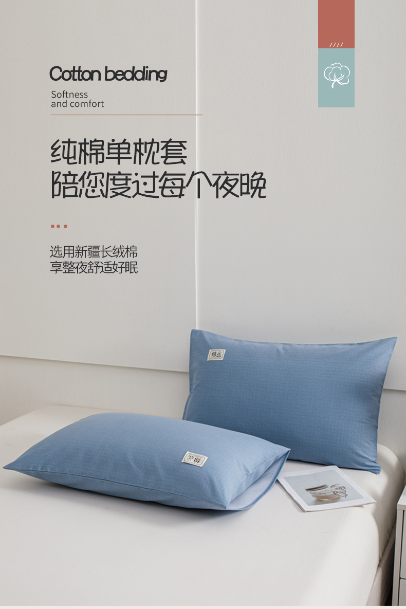 商品名称:宝时兰 2024新款纯色单枕套全棉加厚生态喷气磨毛纯棉口袋枕套 纯色-蓝色