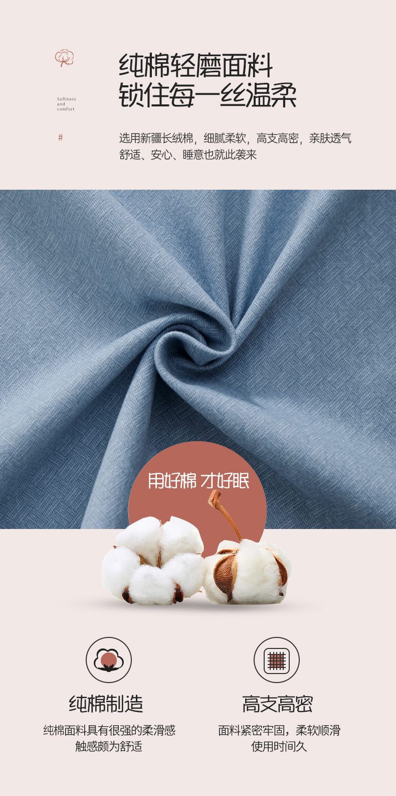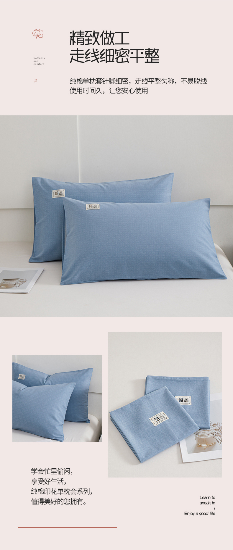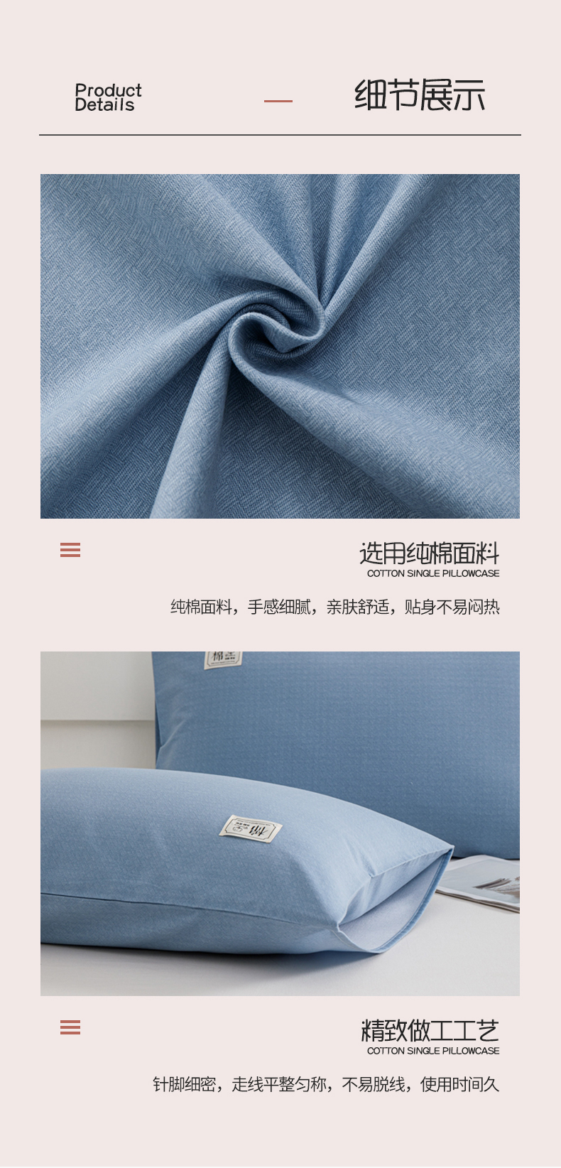 商品名称:宝时兰 2024新款纯色单枕套全棉加厚生态喷气磨毛纯棉口袋枕套 纯色-蓝色