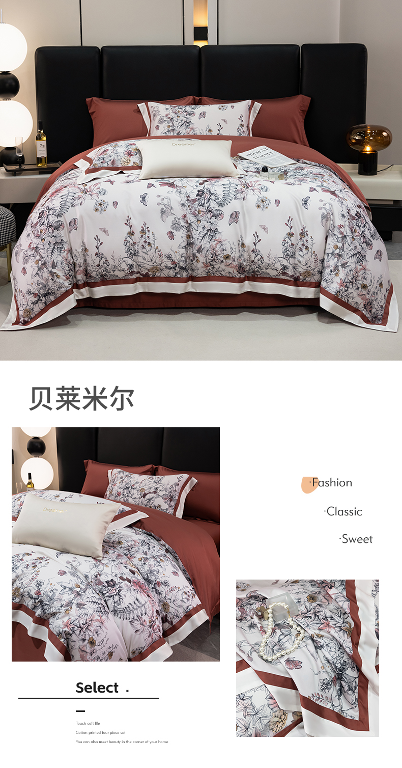 瑞米家居 2024新款天丝棉数码印花四件套 贝莱米尔