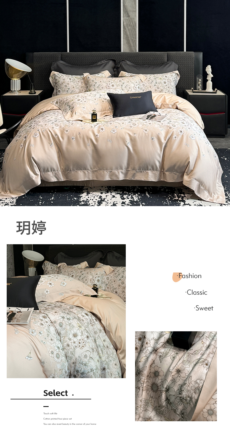 商品名称:瑞米家居 2024新款天丝棉数码印花四件套 玥婷