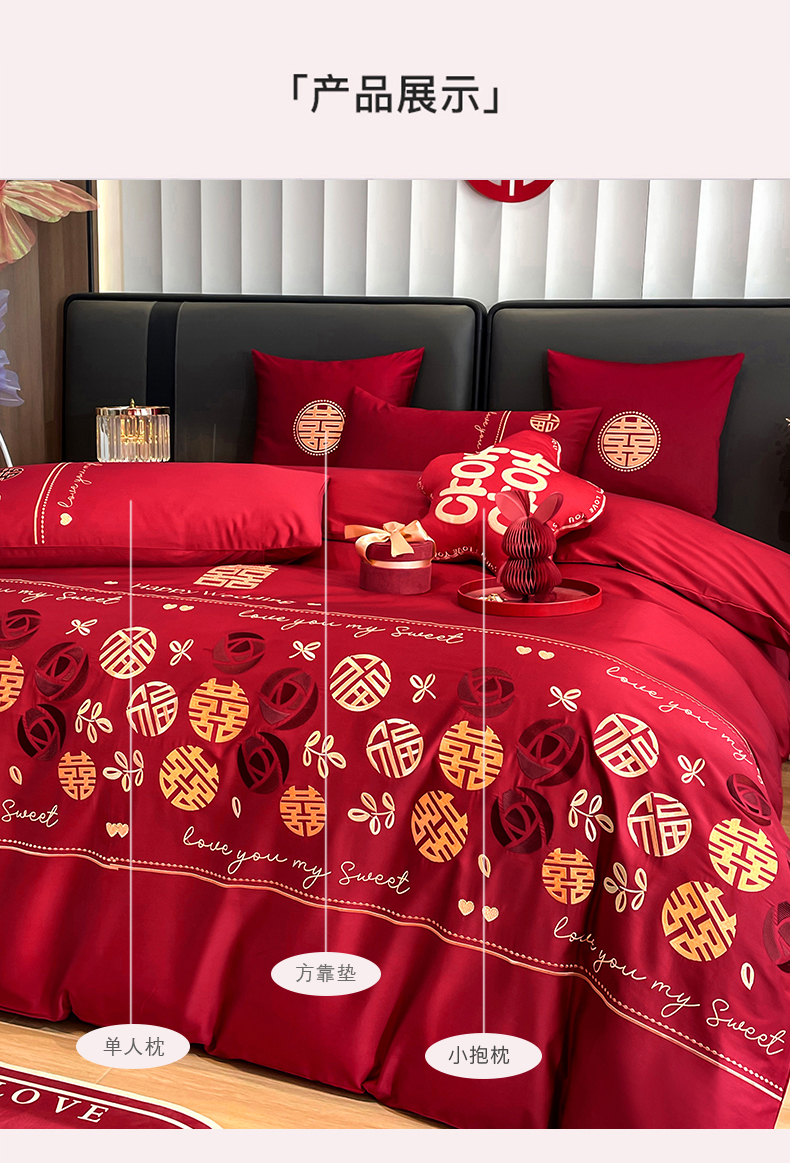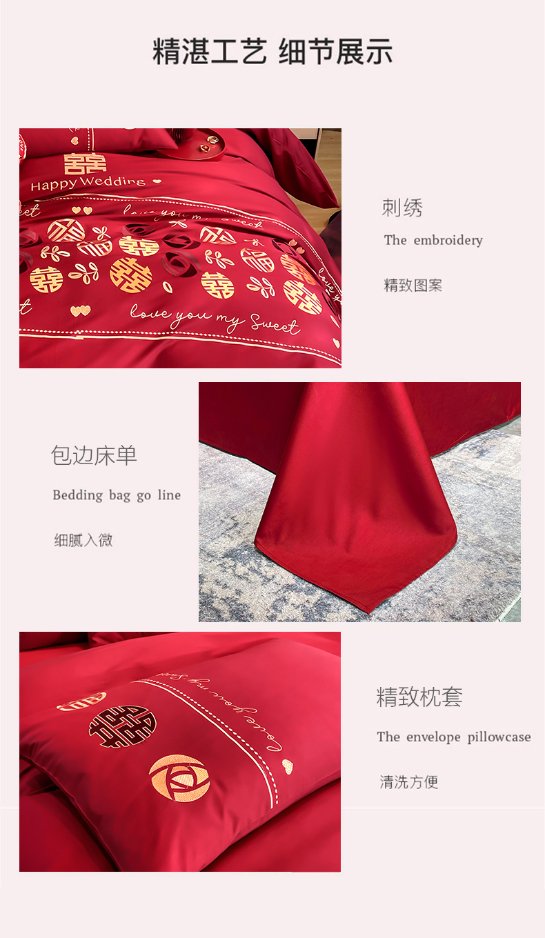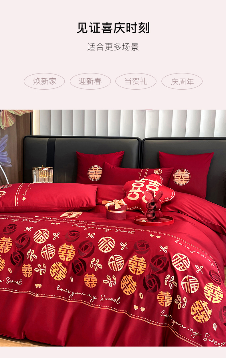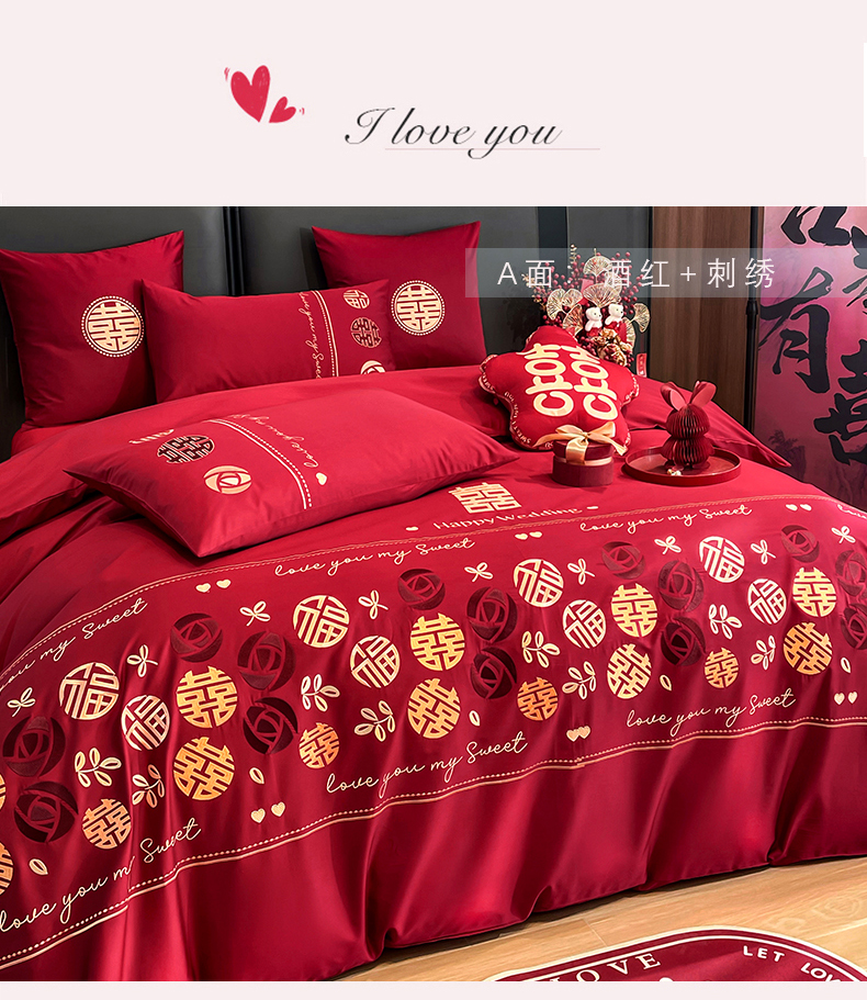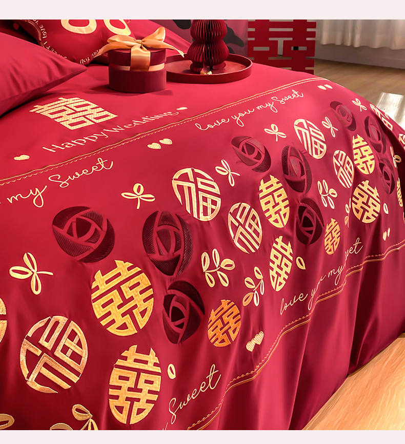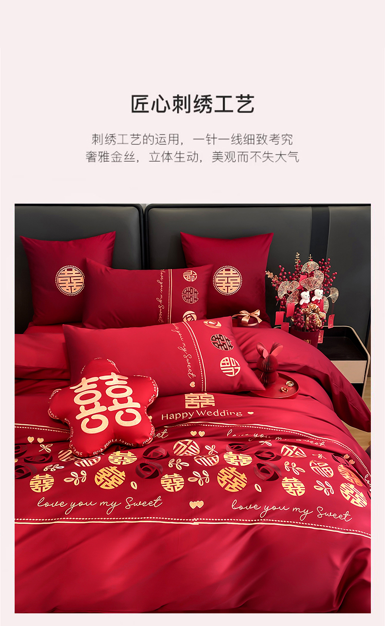 (总)甜咪咪婚庆 2025新款50支长绒棉全棉婚庆床单床盖四件套多件套刺绣工艺,洛可可,爱恋小熊,爱意久久,多子多福,花田喜事,节节高升,克拉恋人,浪漫情怀,怦然心动红,怦然心动玉,甜心玫瑰,温莎公主,伊甸园,醉红妆