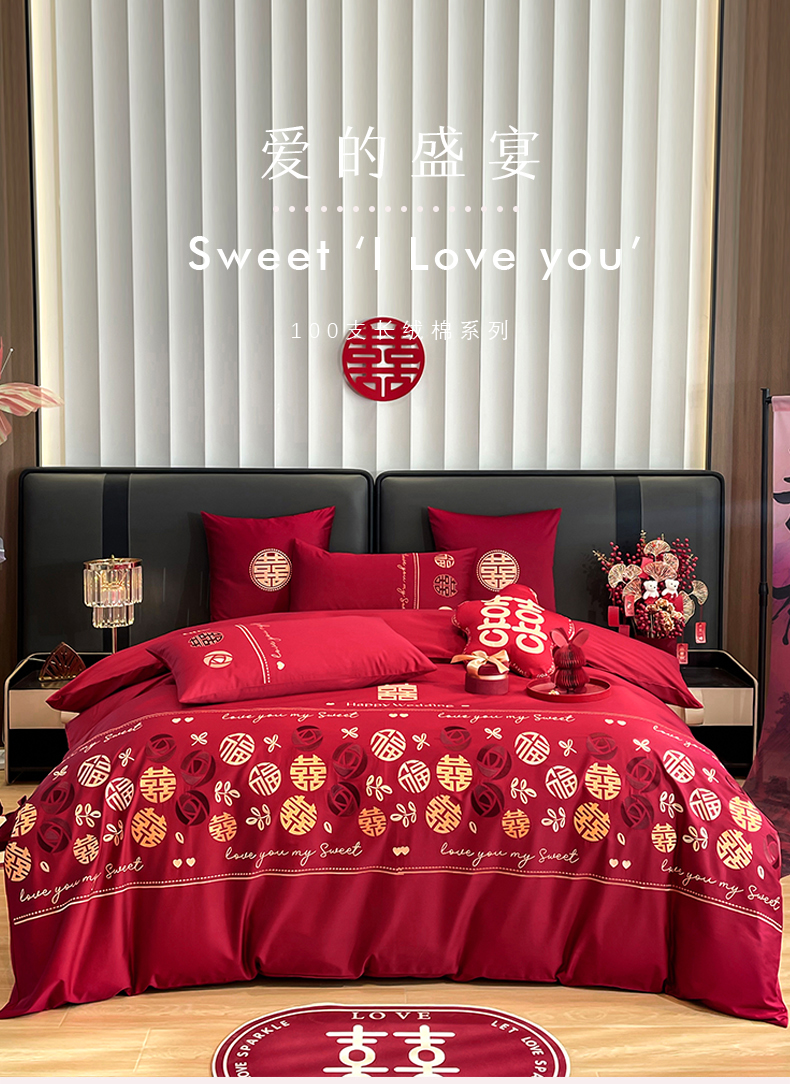 甜咪咪婚庆 2024新品长绒棉全棉婚庆结婚四件套多件套小红书推荐 爱的盛宴