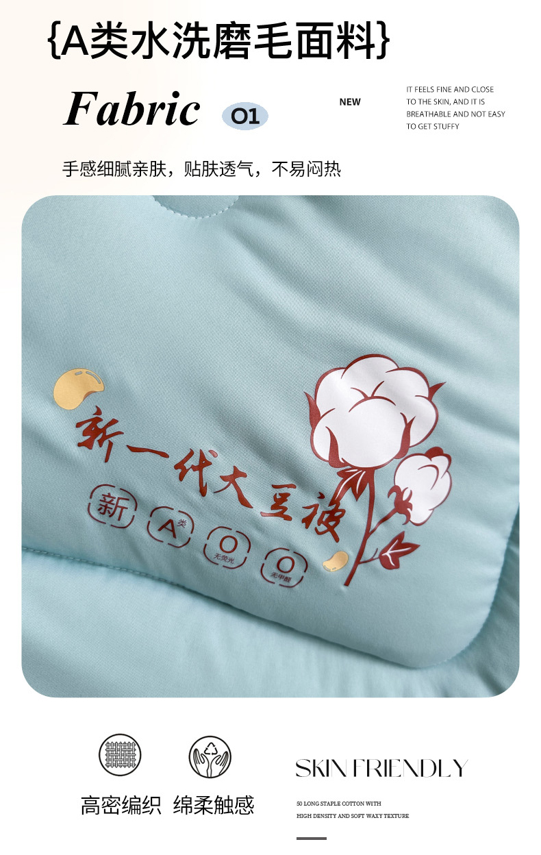 • 91家纺网 家纺一手货源 找家纺 招财狼家纺  2024新款水洗磨毛学生大豆被夏被春秋被多被芯被子 大豆被 水兰