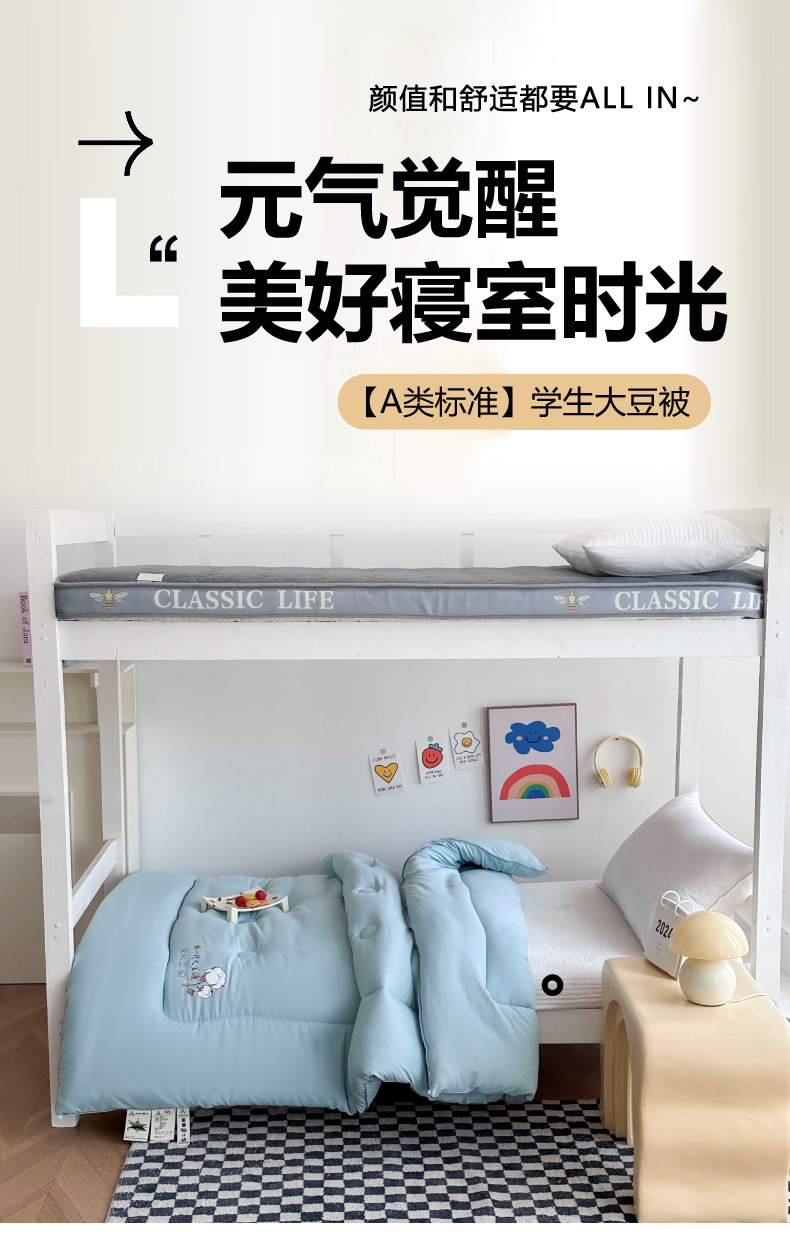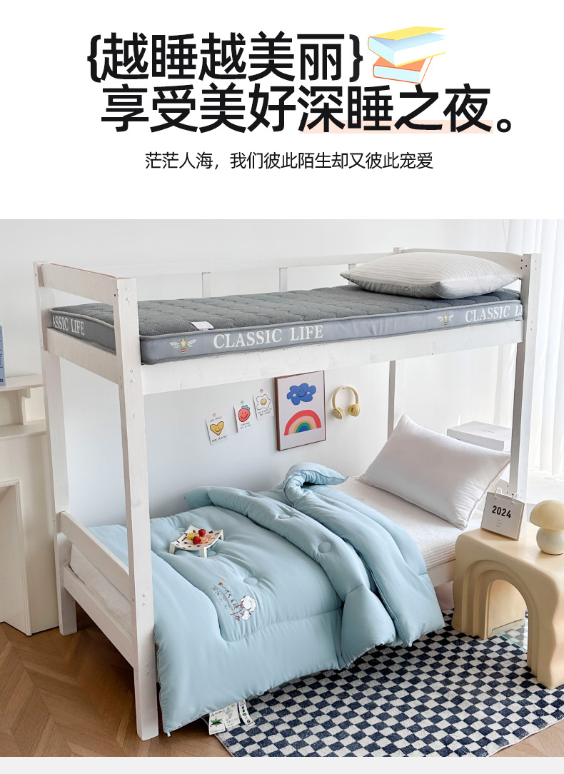 • 91家纺网 家纺一手货源 找家纺 (总)招财狼家纺 2025新款学生大礼包三件套被子床垫枕芯,白色,灰色