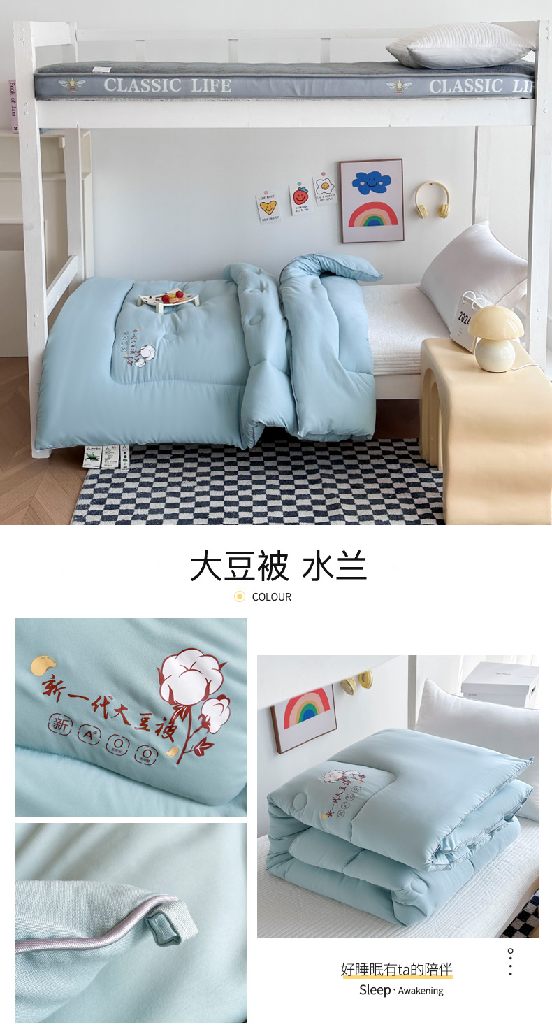 当前位置: 91家纺网 > 商品网购 > 被子 > 冬被 > 招财狼家纺 2024新款水洗磨毛学生大豆被夏被春秋被多被芯被子 大豆被 水兰