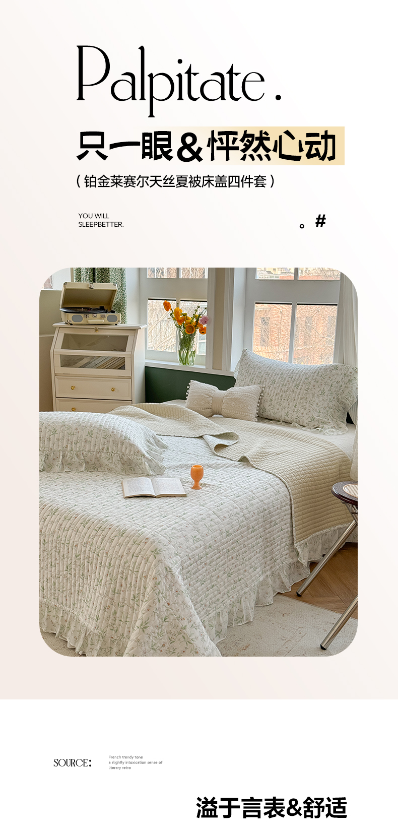 商品名称:诗黛尔 2024新款莱赛尔印花床盖三件套 椰奶色