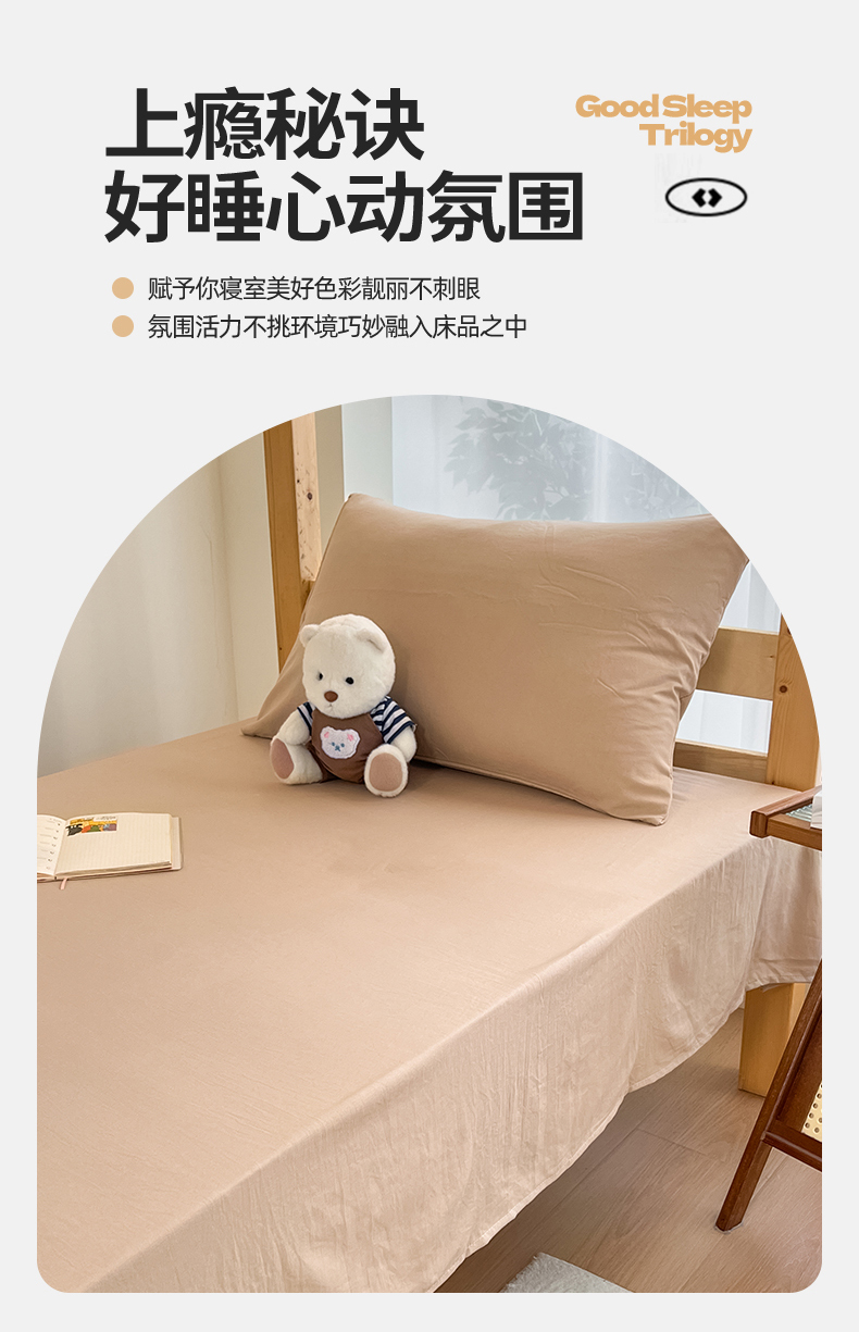 • 91家纺网 家纺一手货源 找家纺 多品 2024新款水洗棉皱皱纱学生宿舍单床单 奶茶咖