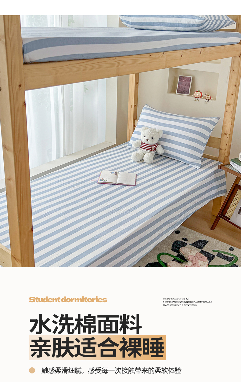 多品 2024新款水洗棉皱皱纱学生宿舍单床单 星蓝