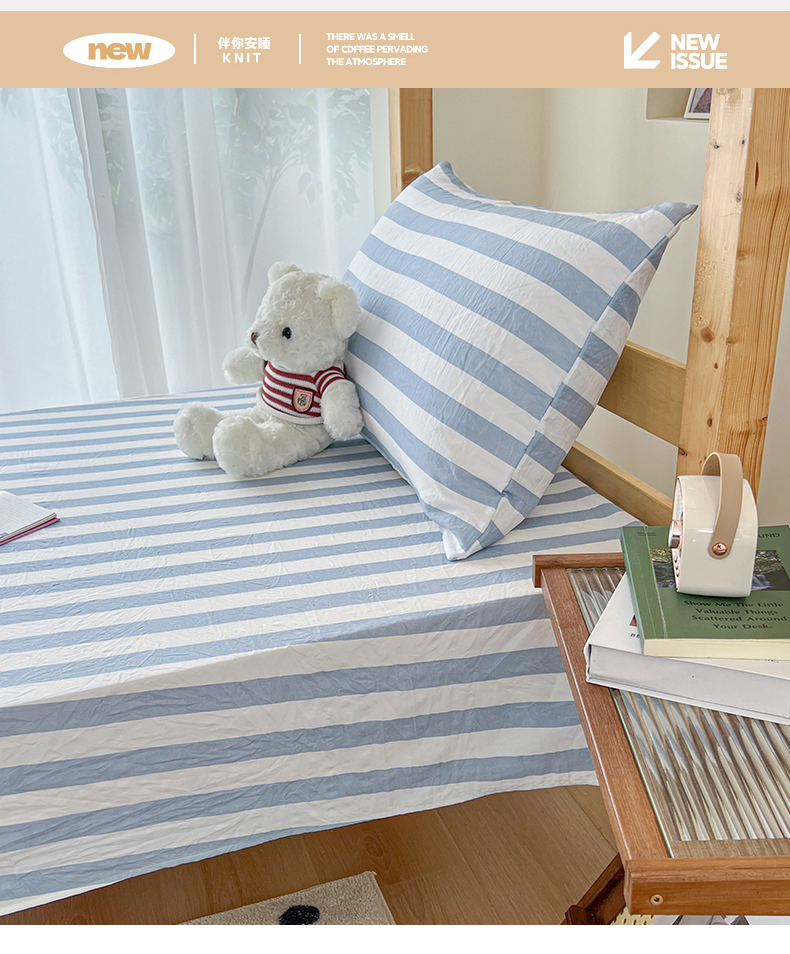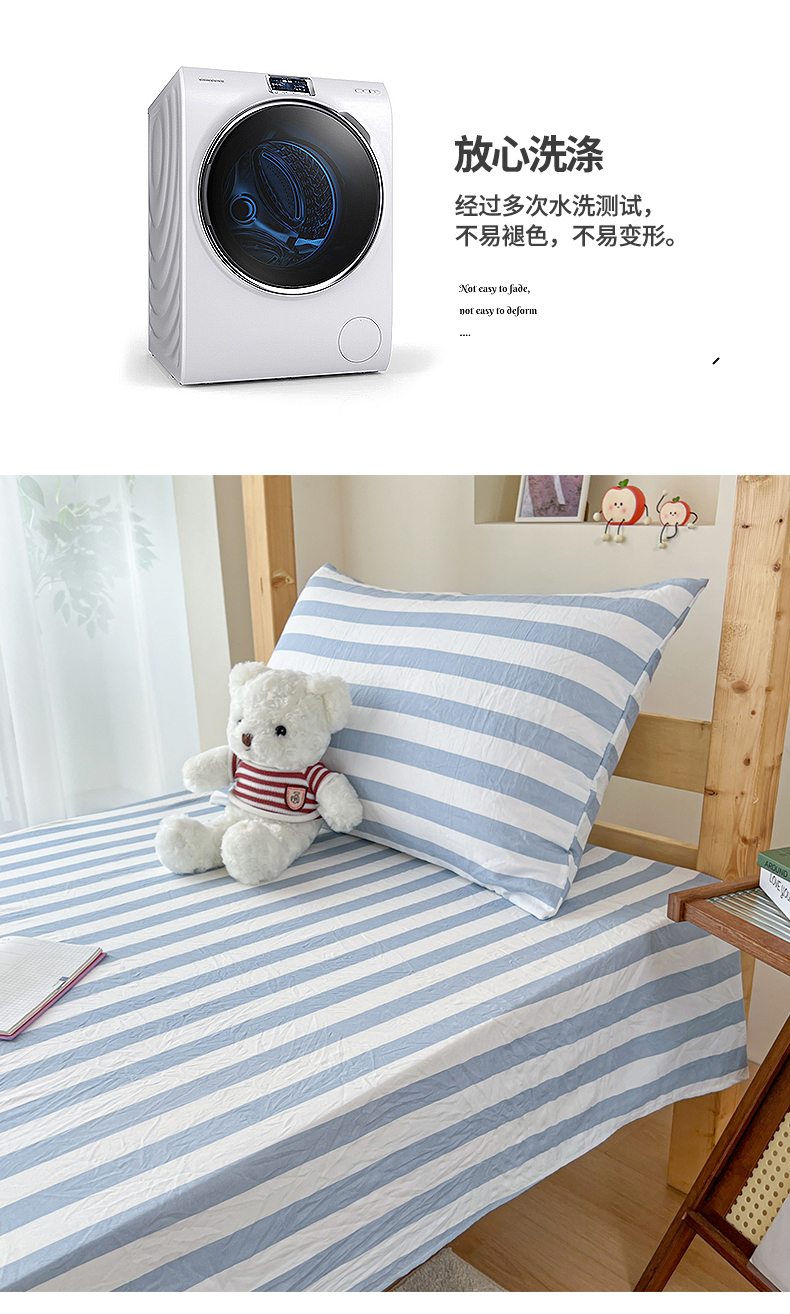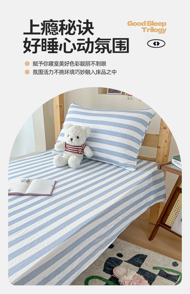 • 91家纺网 家纺一手货源 找家纺 多品 2024新款水洗棉皱皱纱学生宿舍单床单 星蓝
