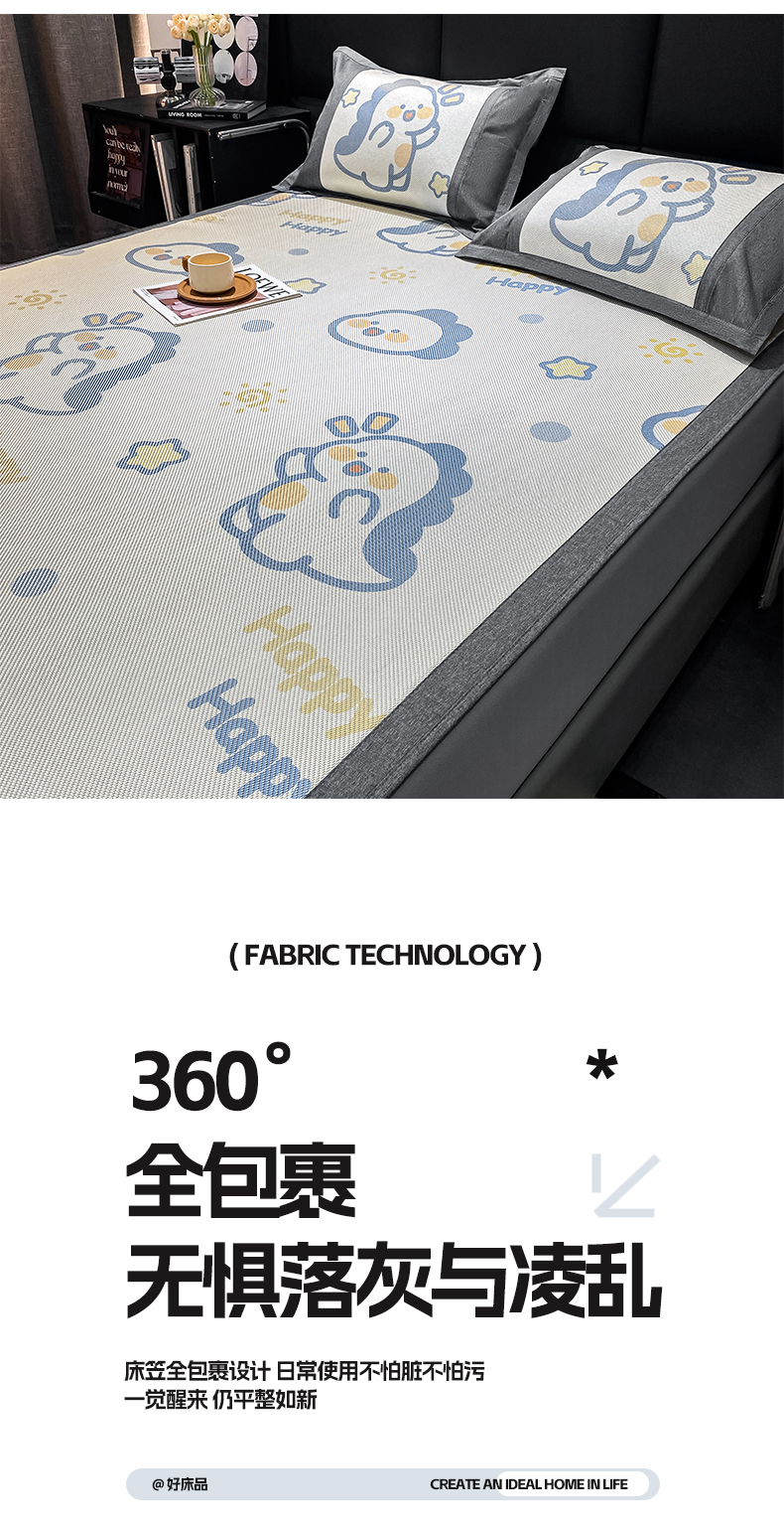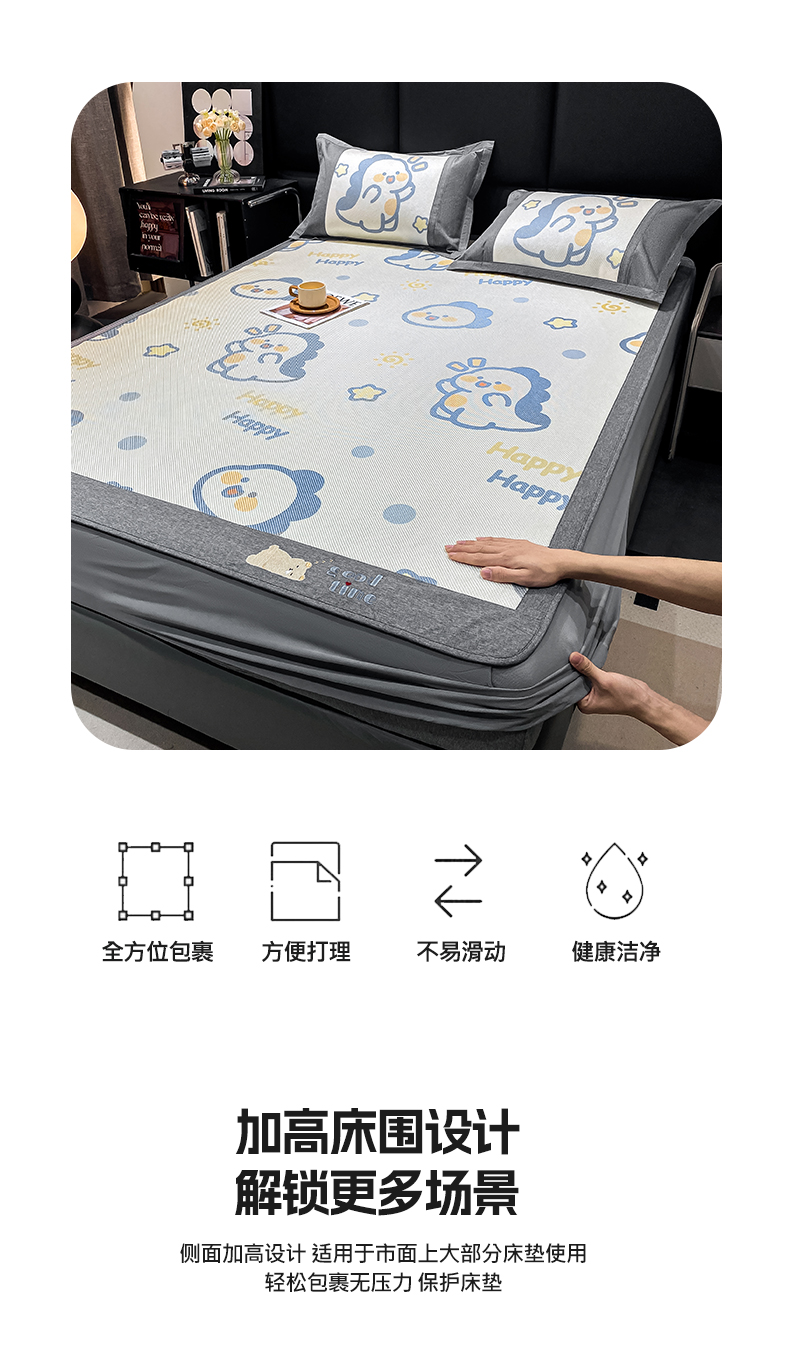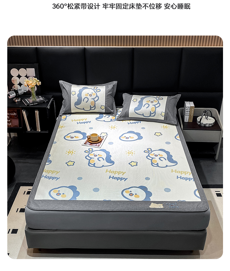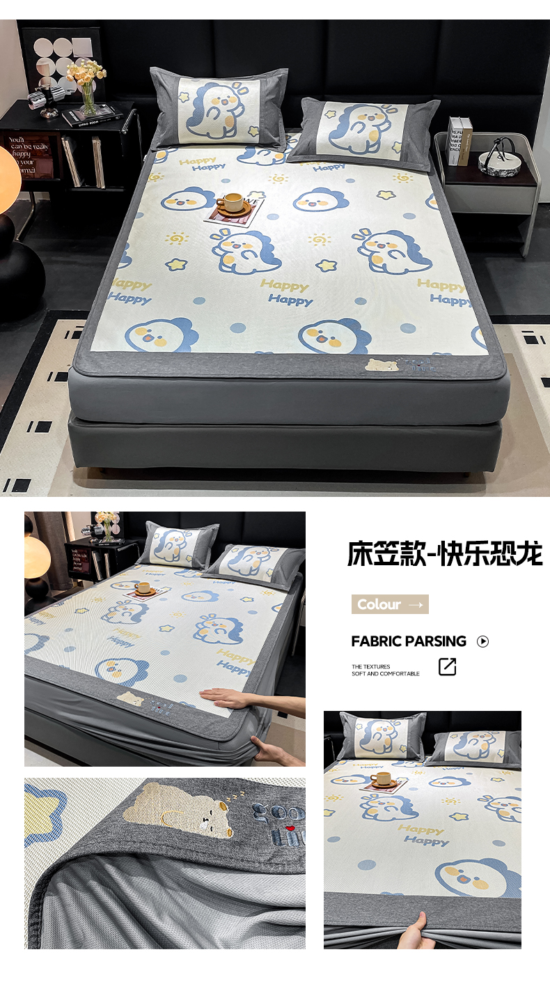 商品名称:宜家坊 2024新款A类抗菌数码印花冰藤凉席 床笠款-快乐恐龙