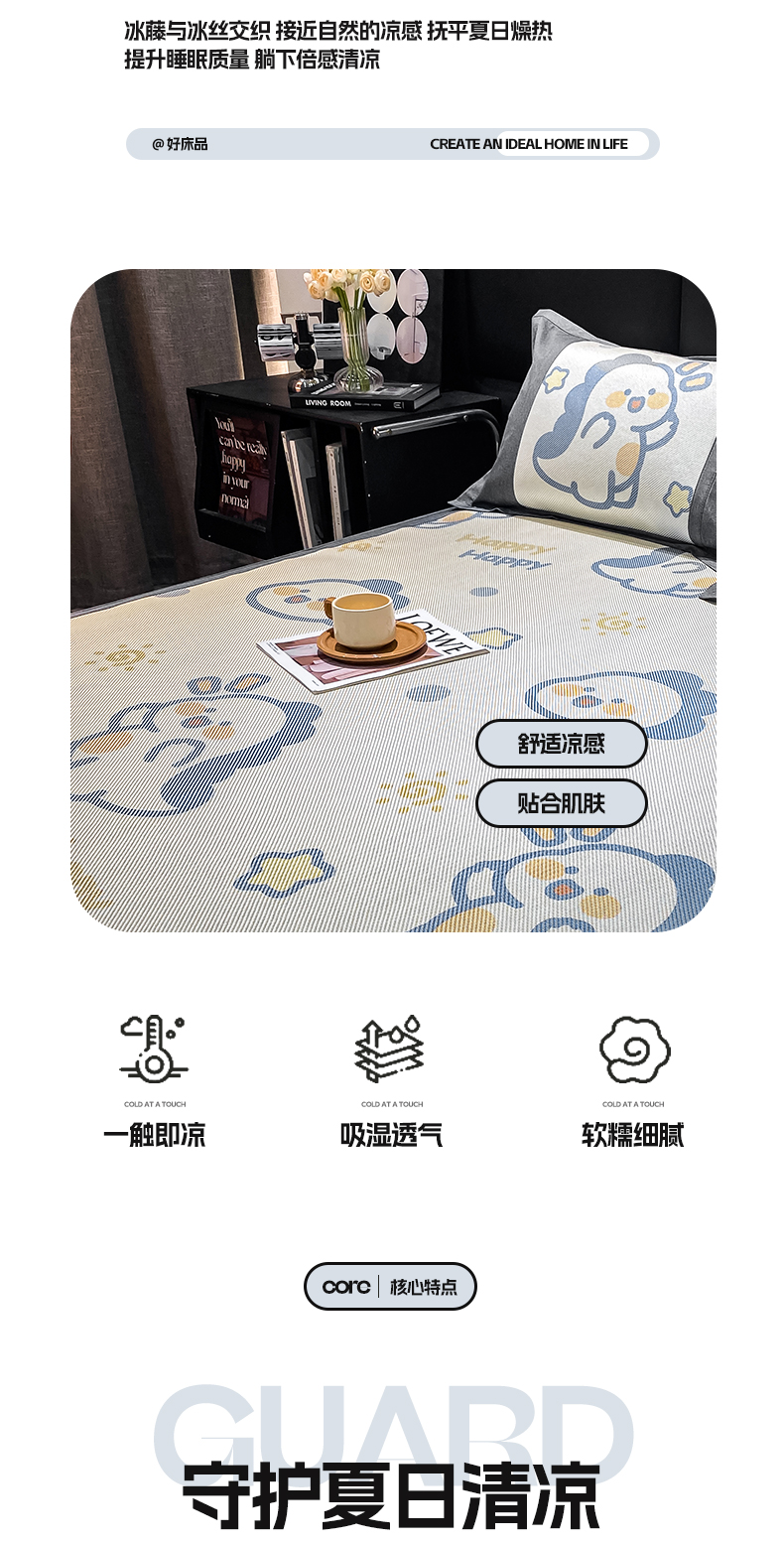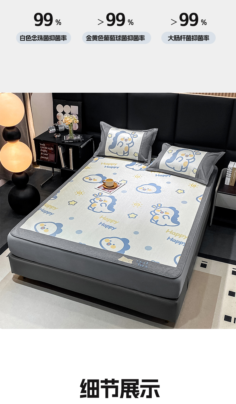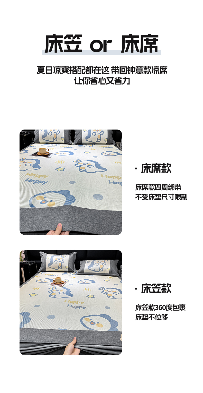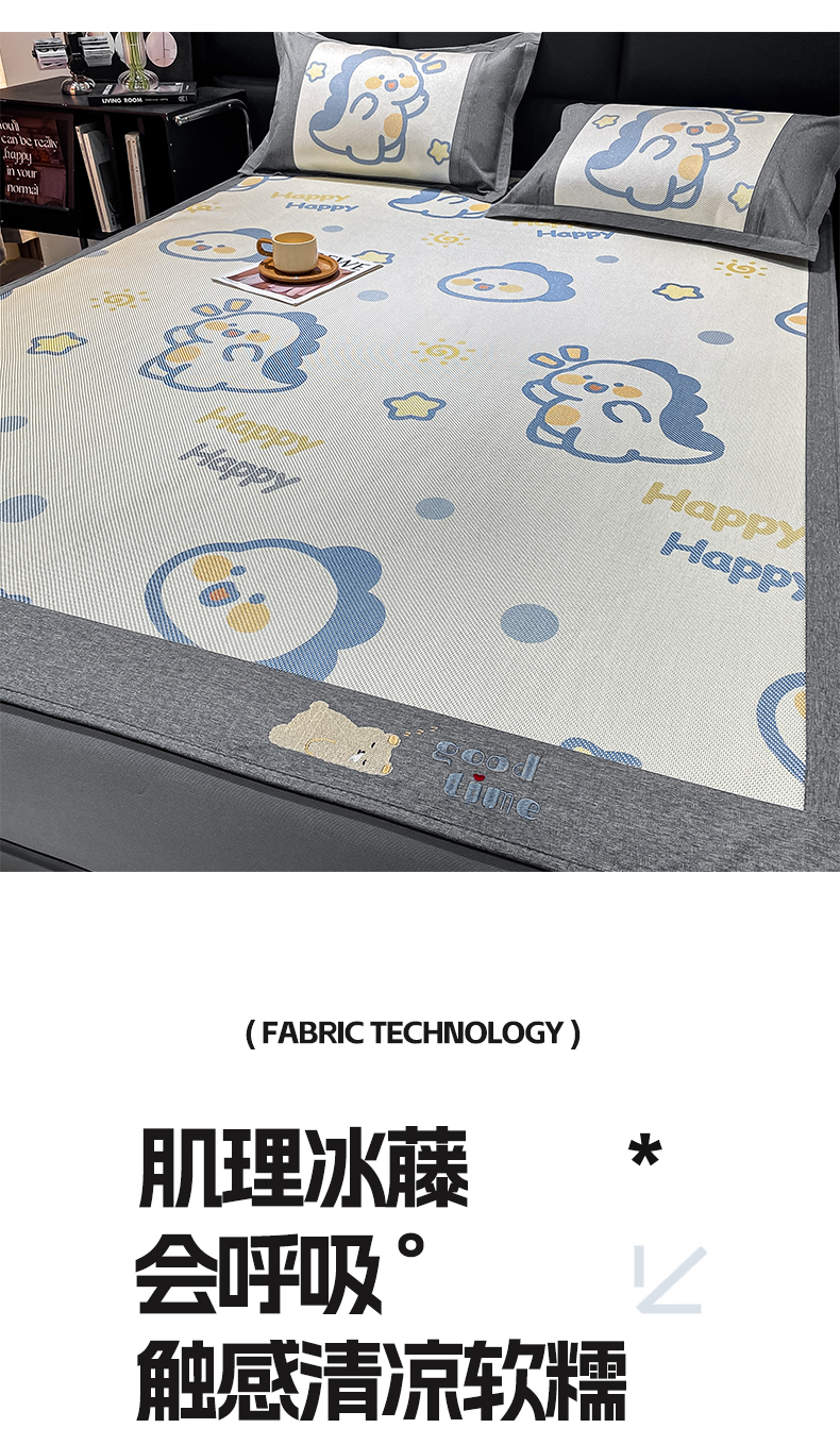 商品名称:宜家坊 2024新款A类抗菌数码印花冰藤凉席 床笠款-快乐恐龙