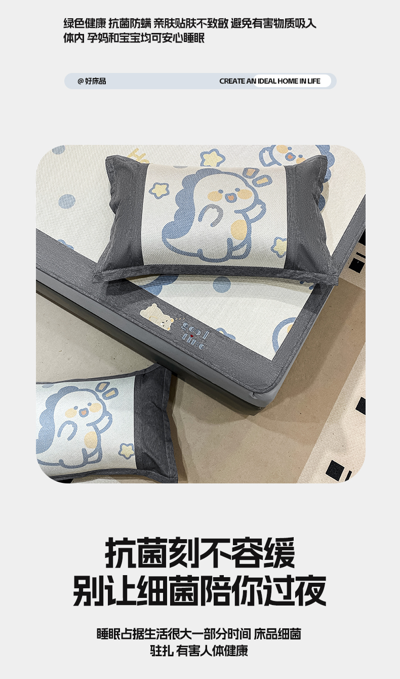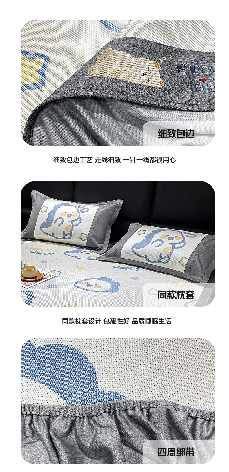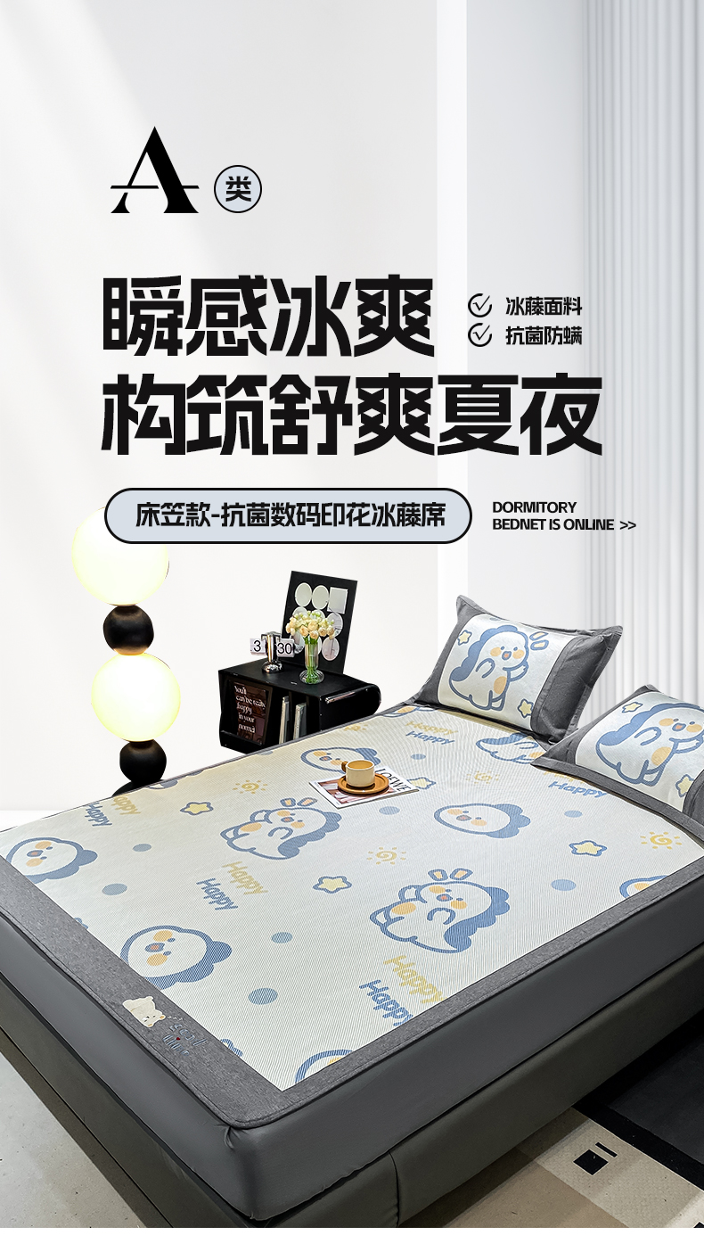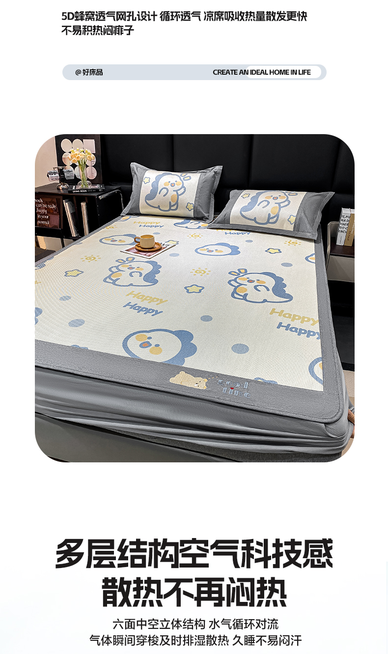 宜家坊 2024新款A类抗菌数码印花冰藤凉席 床笠款-快乐恐龙