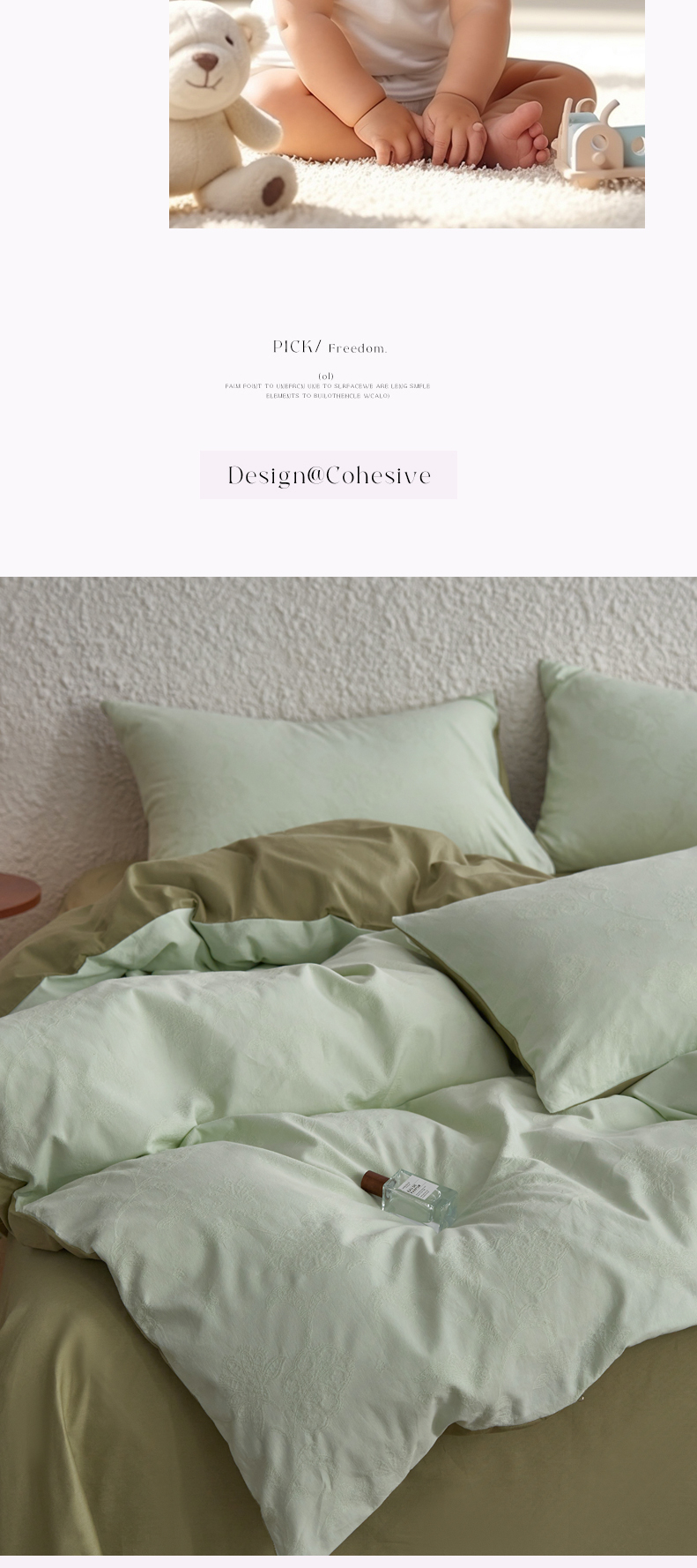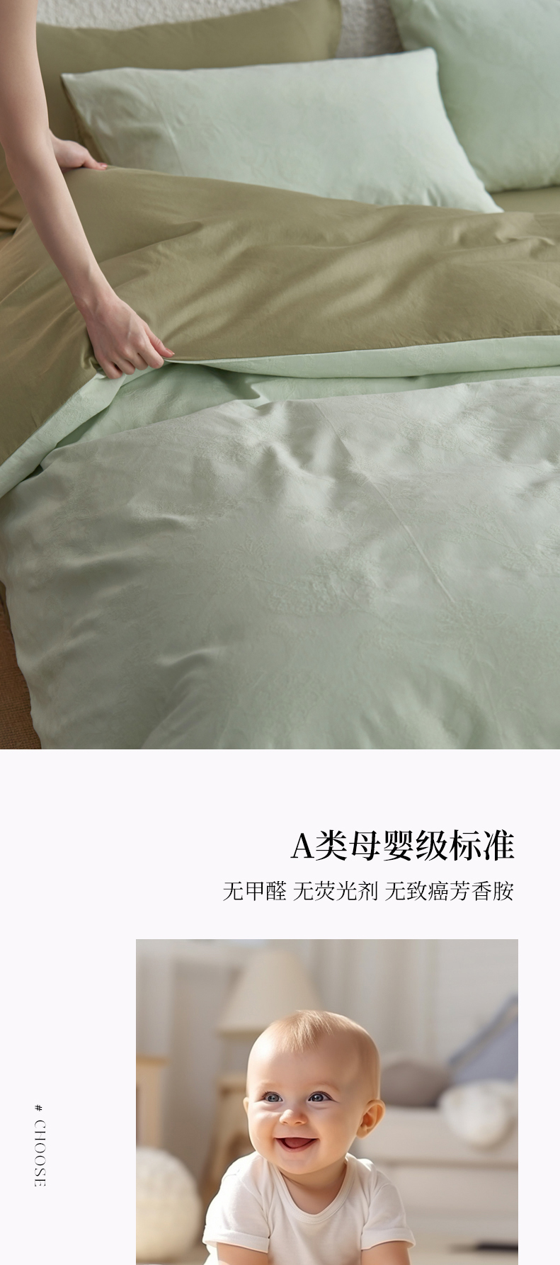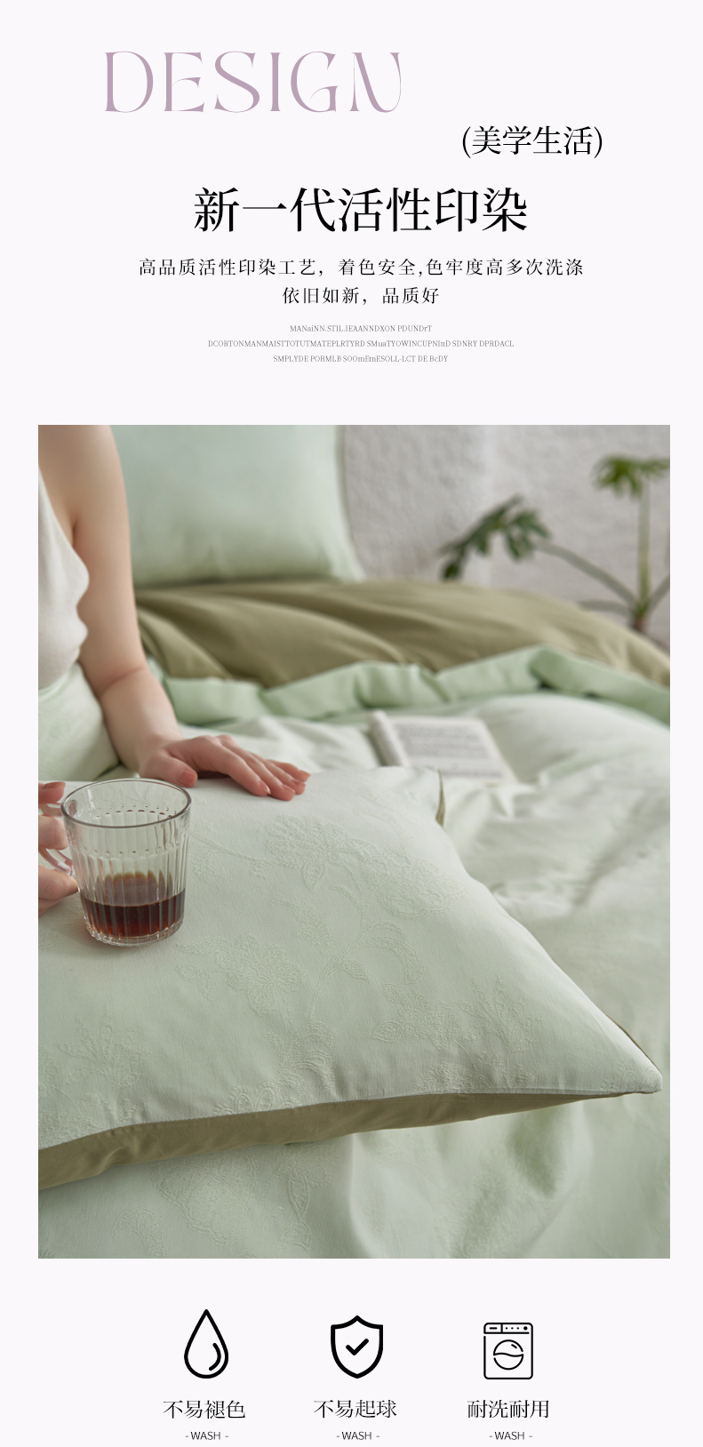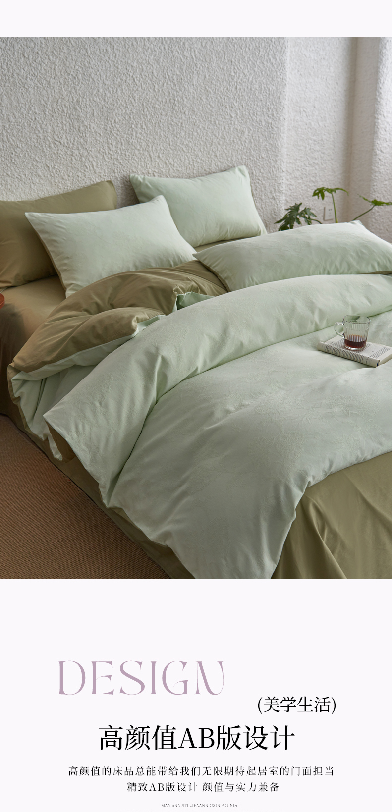 (总)三朵家纺 2026新款ins风全棉纯色双拼水洗棉四件套极简风系列,风青月白,焦糖曲奇,蓝韵雾纱,流光奶绿,抹茶奶黄,浅蓝芝士,香芋奶昔,烟墨灰,云纱可可