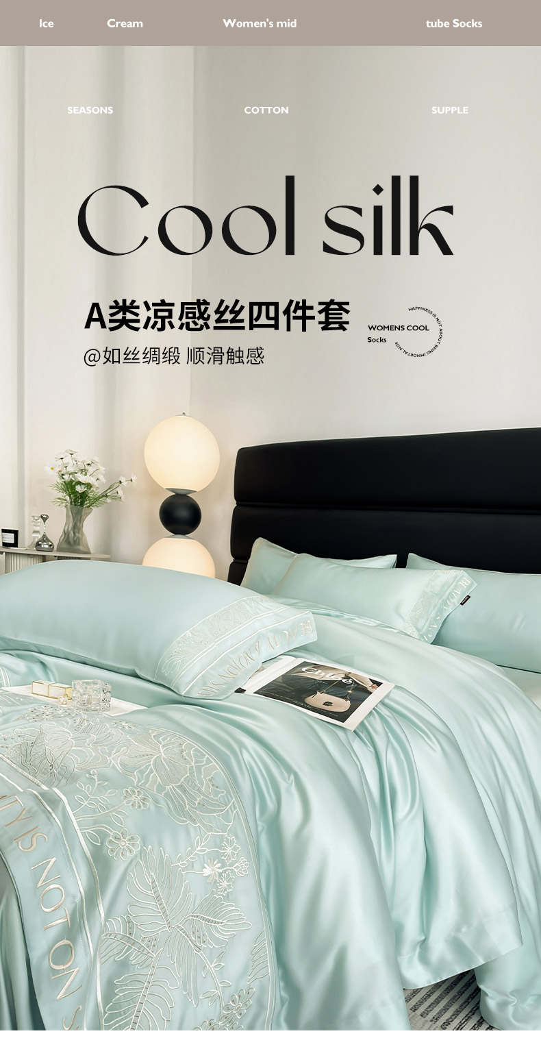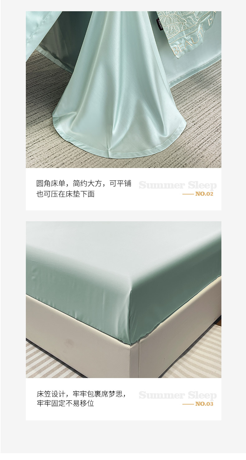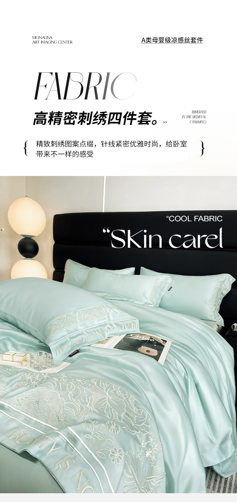 (总) 2024春夏爆款A类母婴级凉感真丝夏季裸睡天丝床单床笠轻奢刺绣冰丝四件套