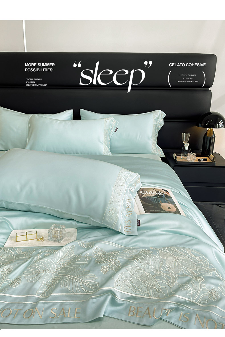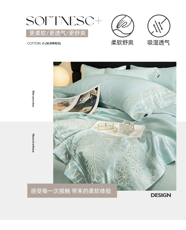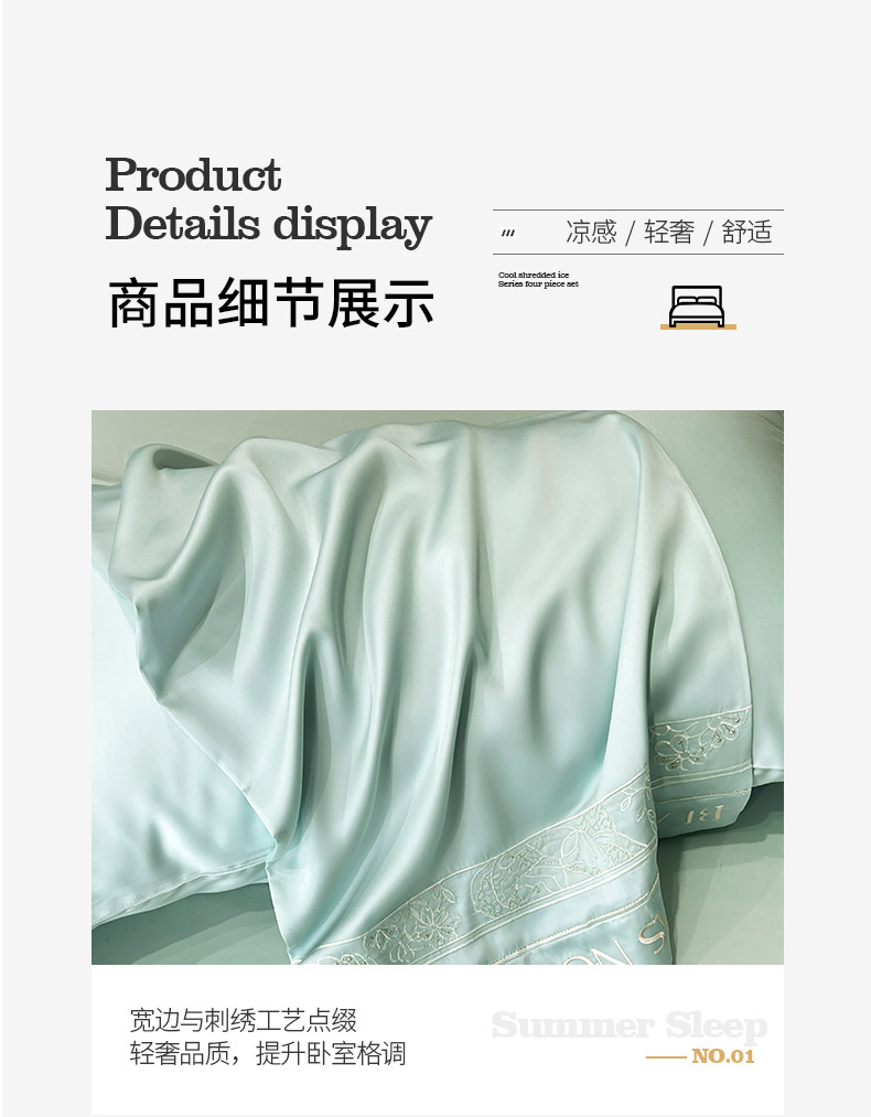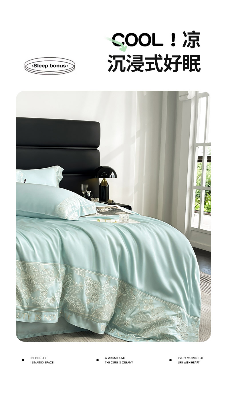 (总) 2024春夏爆款A类母婴级凉感真丝夏季裸睡天丝床单床笠轻奢刺绣冰丝四件套