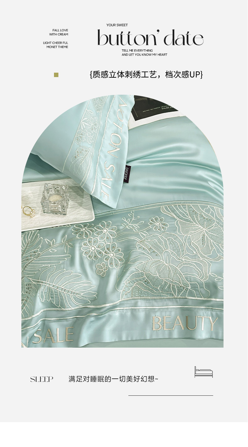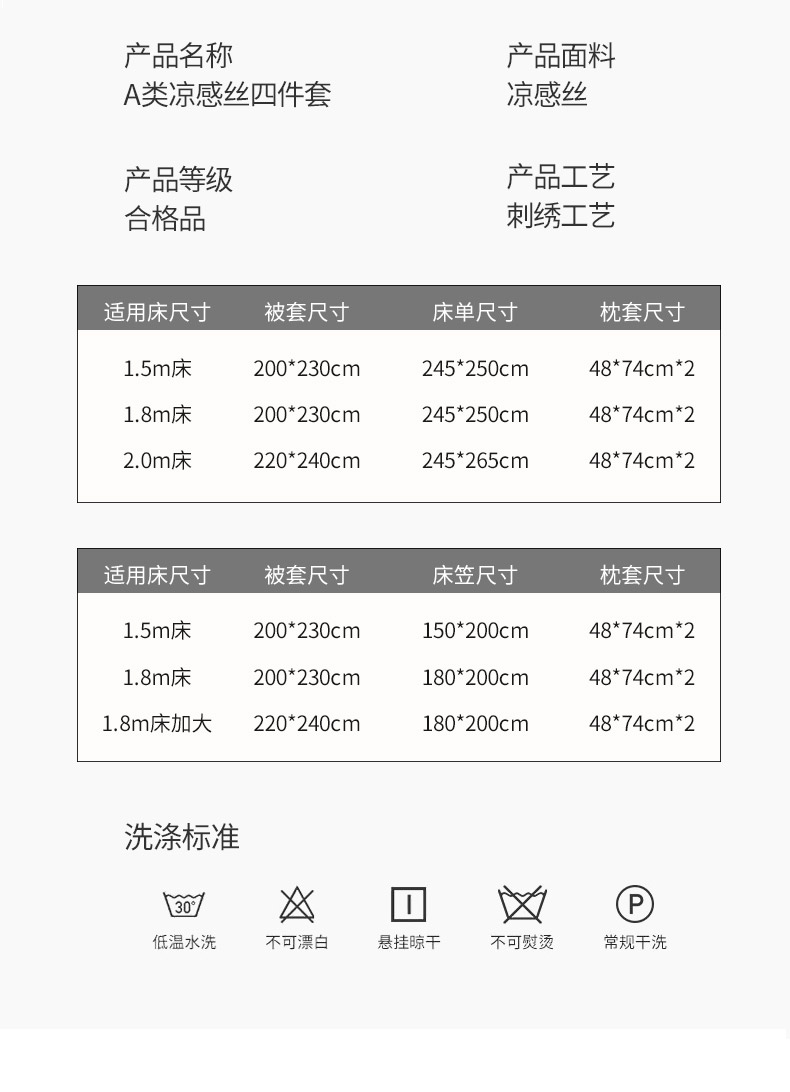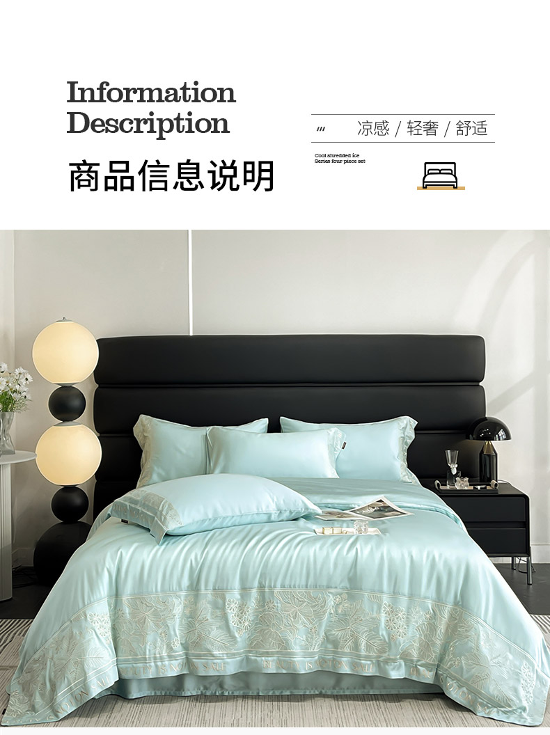 商品名称:(总) 2024春夏爆款A类母婴级凉感真丝夏季裸睡天丝床单床笠轻奢刺绣冰丝四件套