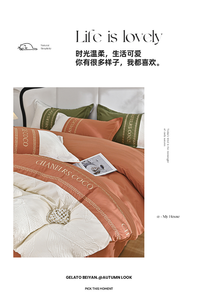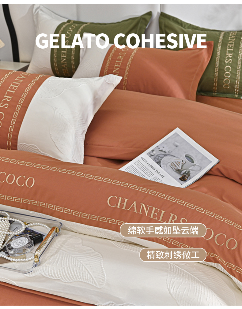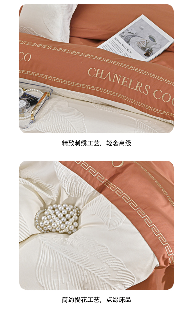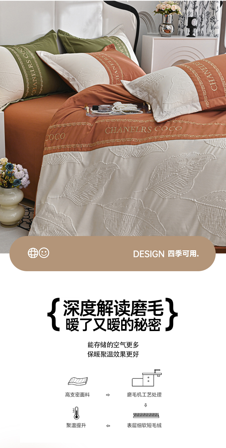 (总)富宁家纺 2025新款直播爆款水洗棉磨毛立体浮雕刺绣四件套-卡诗,橙叶子,灰叶子,粉叶子,绿叶子,蓝叶子