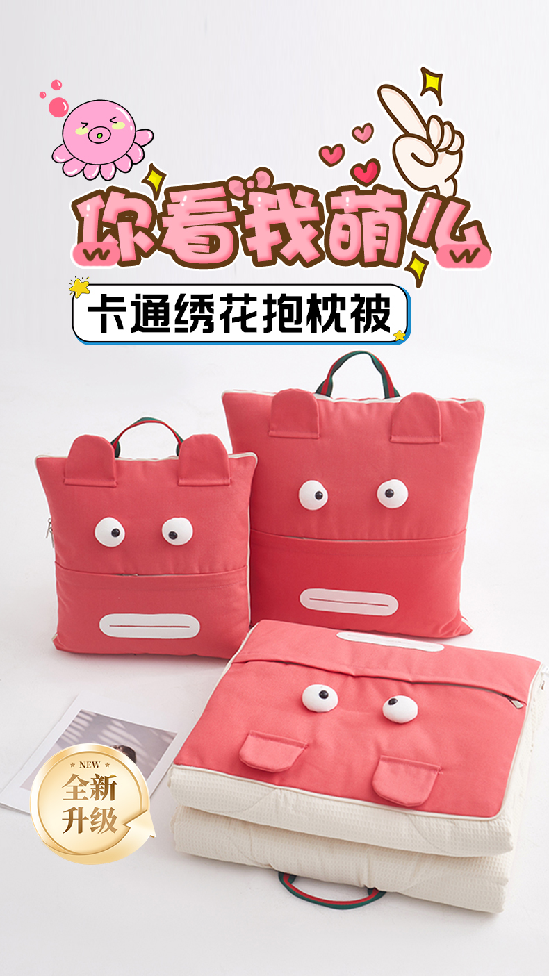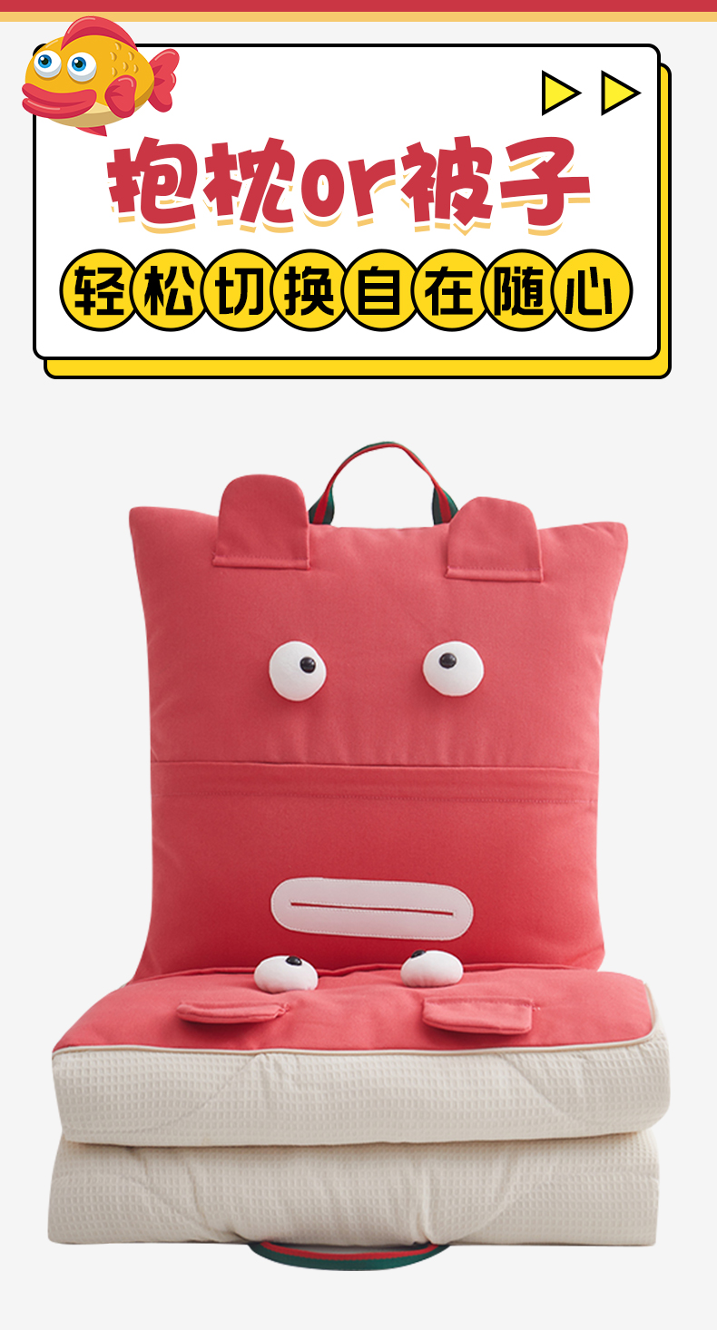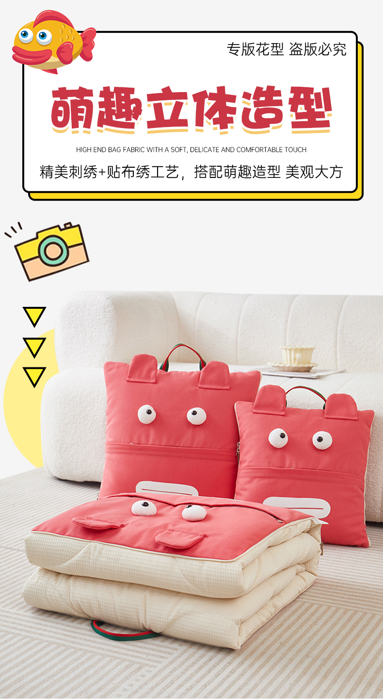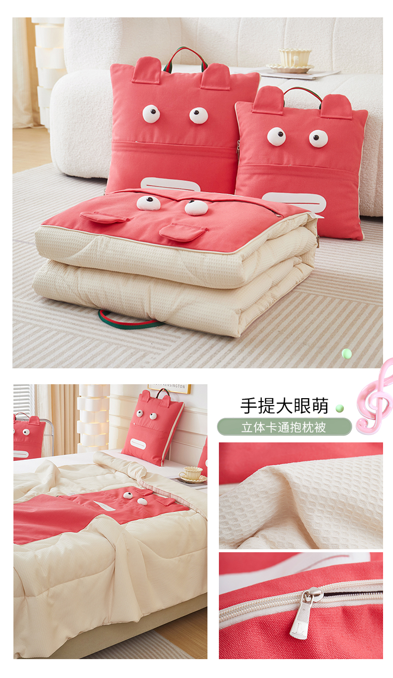 商品名称:雷娜家居 2024新款手提款帆布面料卡通绣花抱枕被 手提大眼萌