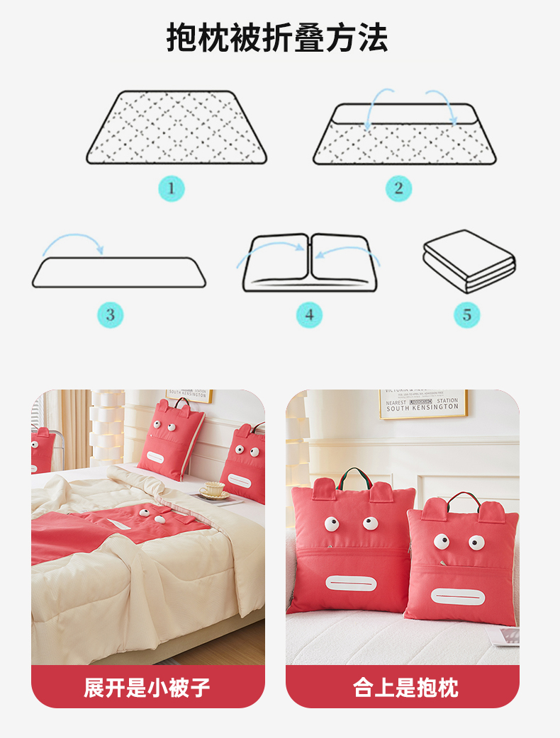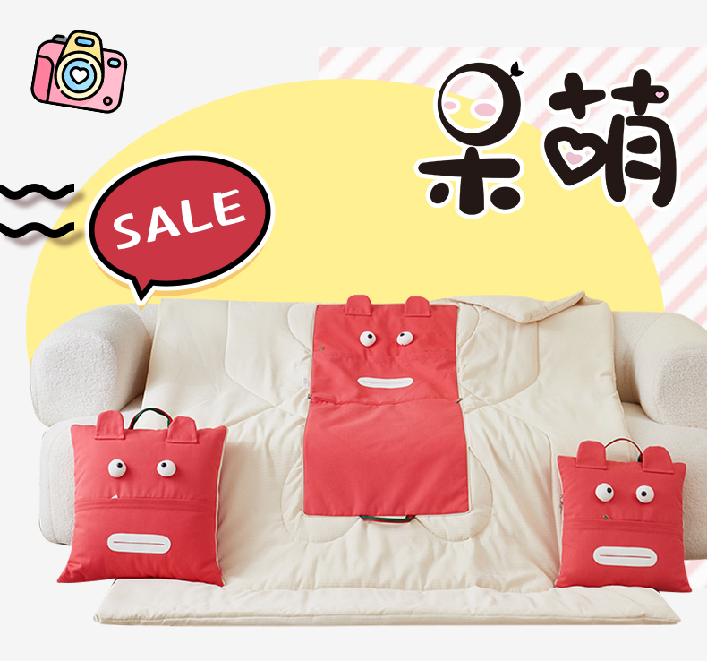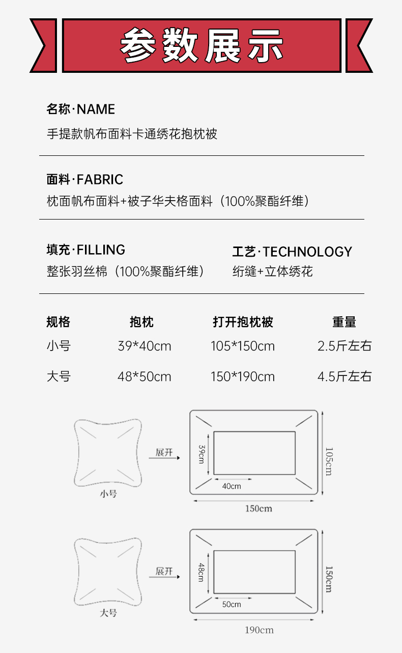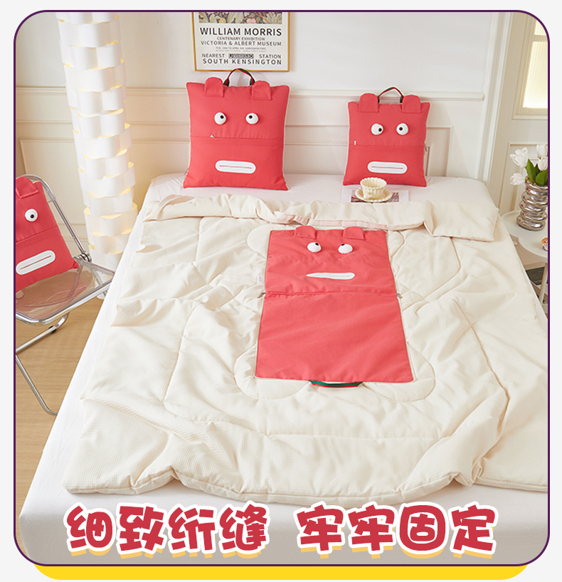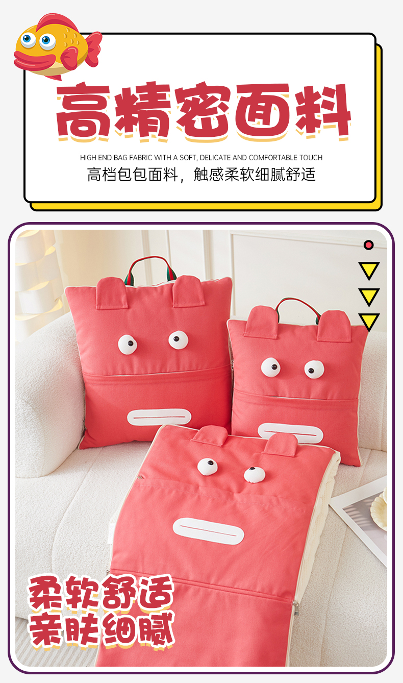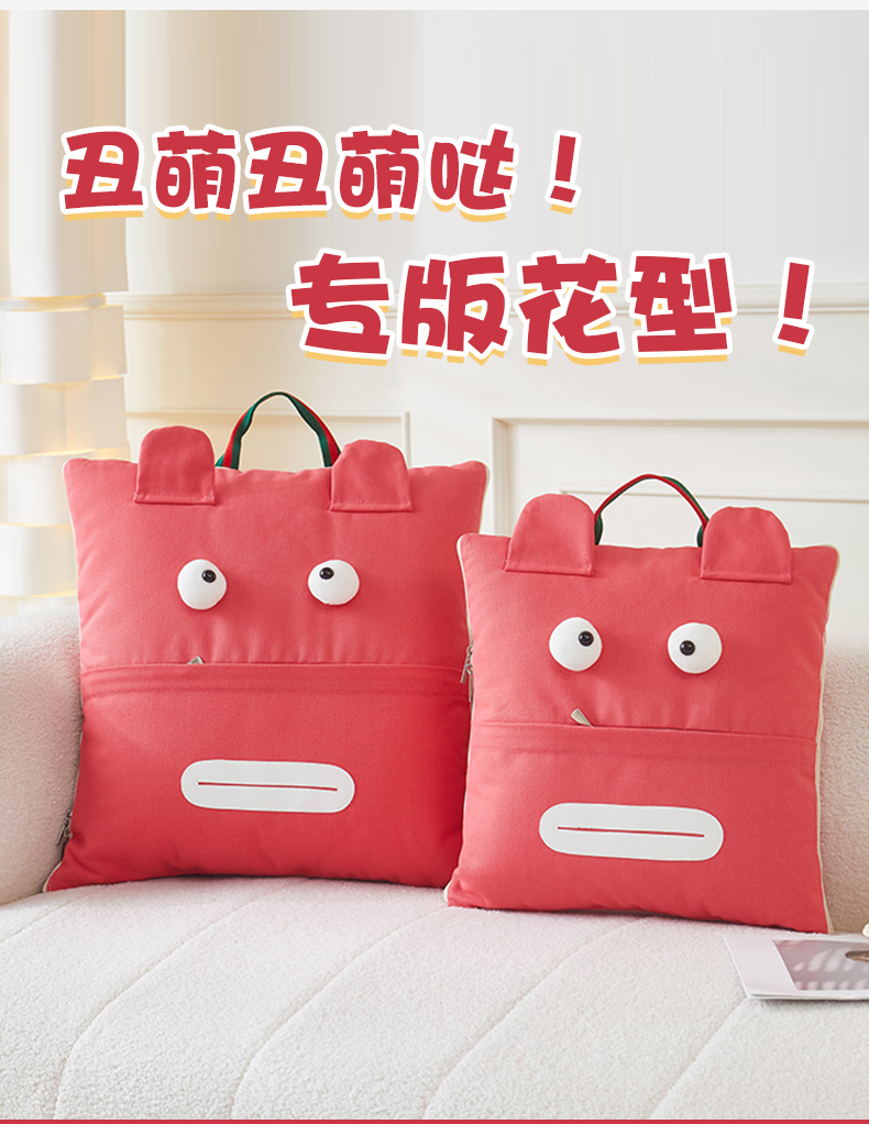 商品名称:雷娜家居 2024新款手提款帆布面料卡通绣花抱枕被 手提大眼萌