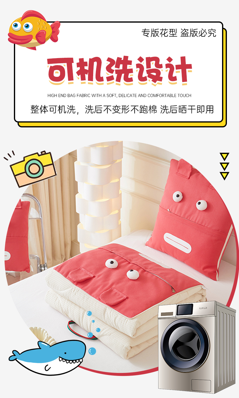 (总)雷娜家居 特色手提款帆布面料卡通绣花抱枕被,手提大眼萌,手提小怪鱼,熊猫艾草绿