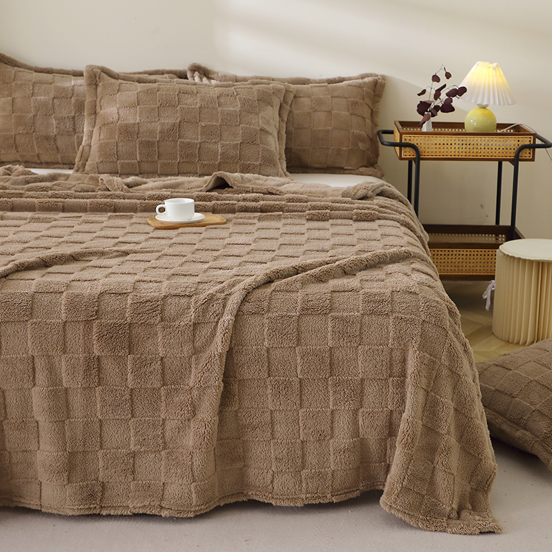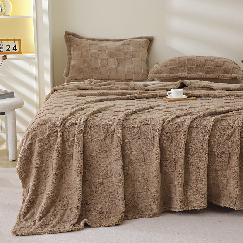 商品名称:芸锦豪 2024新款意大利面包格毛毯-卷边款 咖色