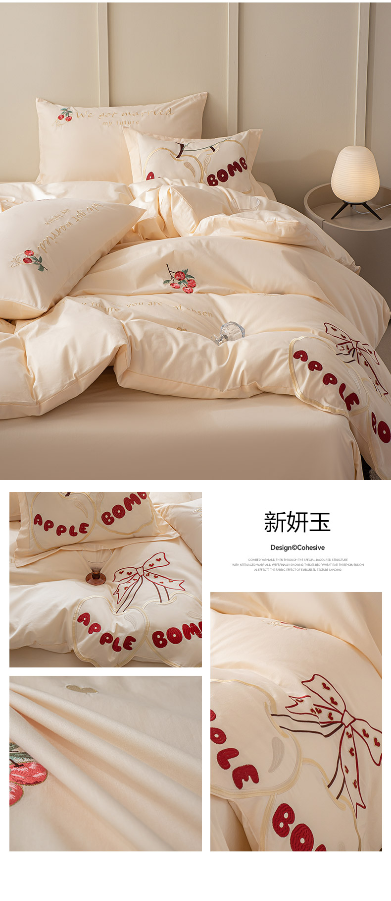 (总) 2026新品高端轻奢风A类贡缎长绒棉四件套纯棉重工刺绣被套床单高级感床笠床上用品-格拉芙,格拉芙-芸粉,格拉芙-柔杏