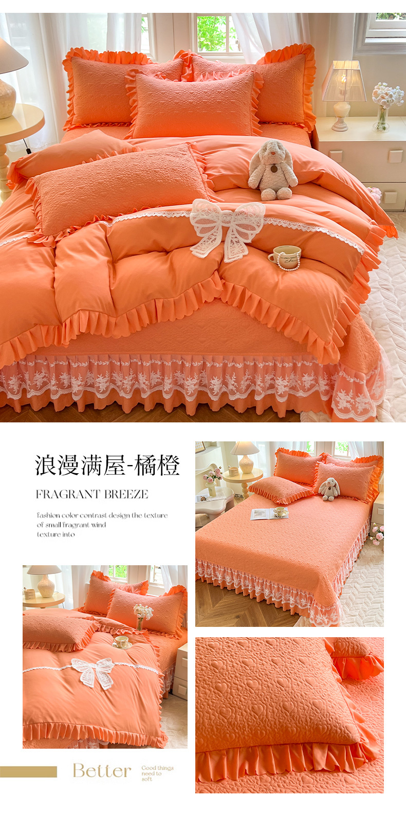 商品名称:唐人居 2025新款韩式花边蝴蝶结床盖四件套-浪漫满屋 浪漫满屋-橘橙