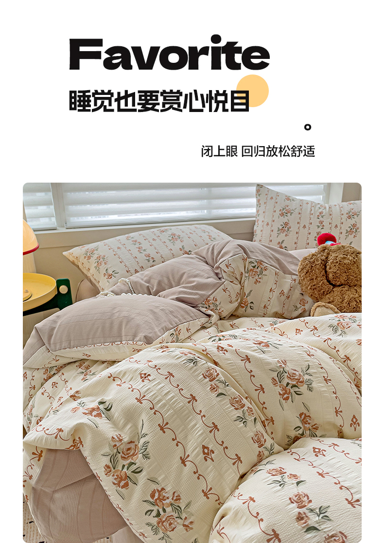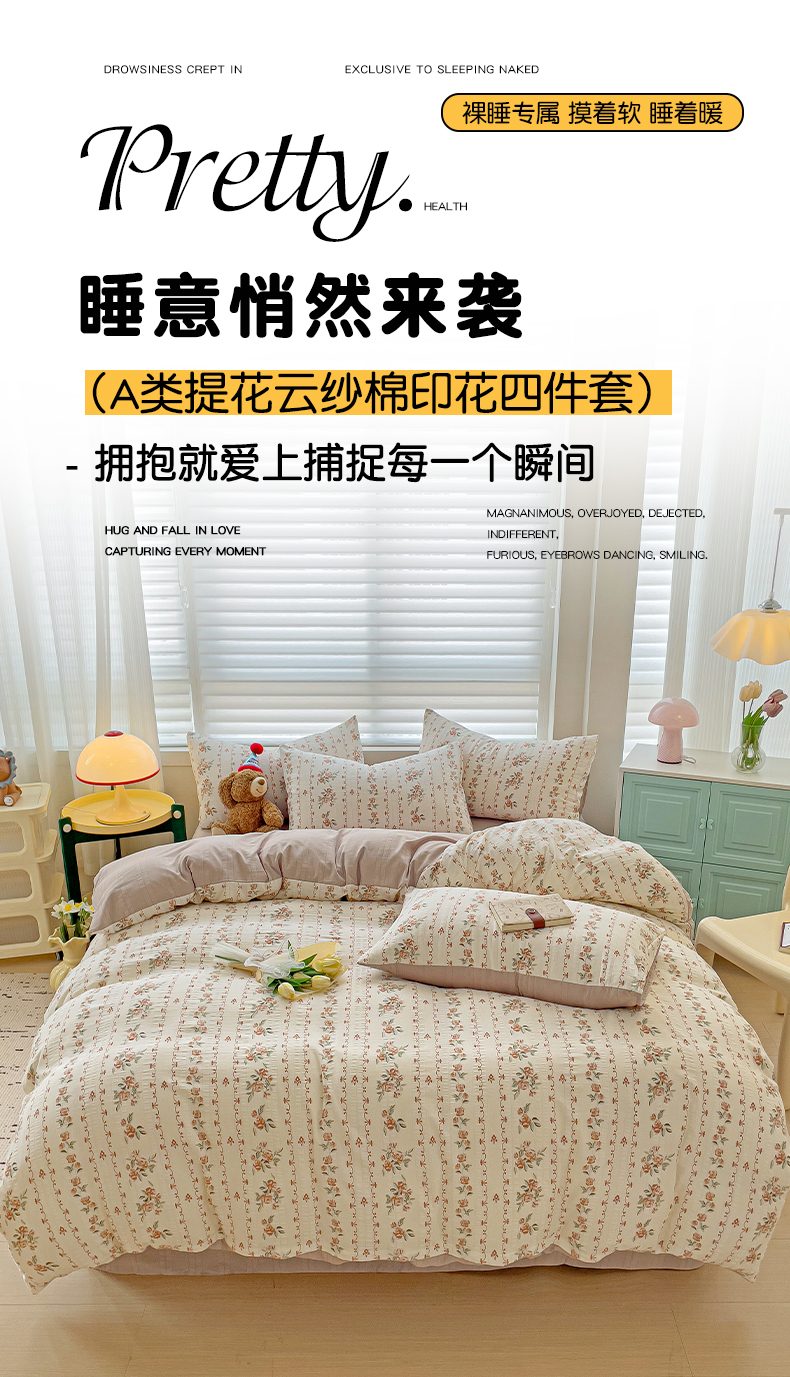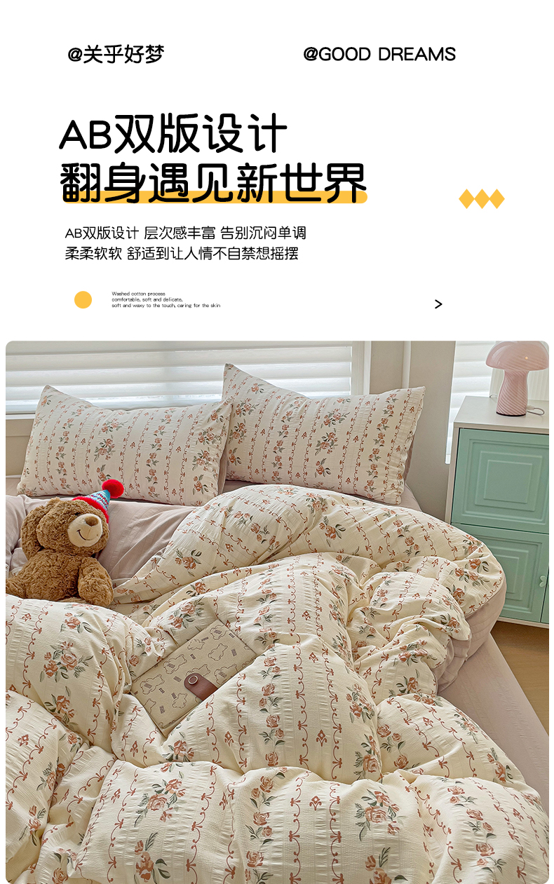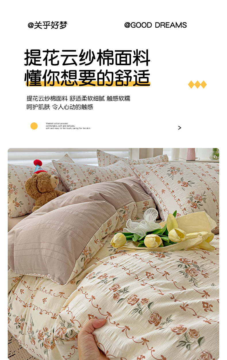 当前位置: 91家纺网 > 商品网购 > 床品套件 > 四件套 > 其它四件套 > 优选良品 2025新款有氧提花云纱棉圆角吊边工艺款四件套学生三件套 玫瑰庄园