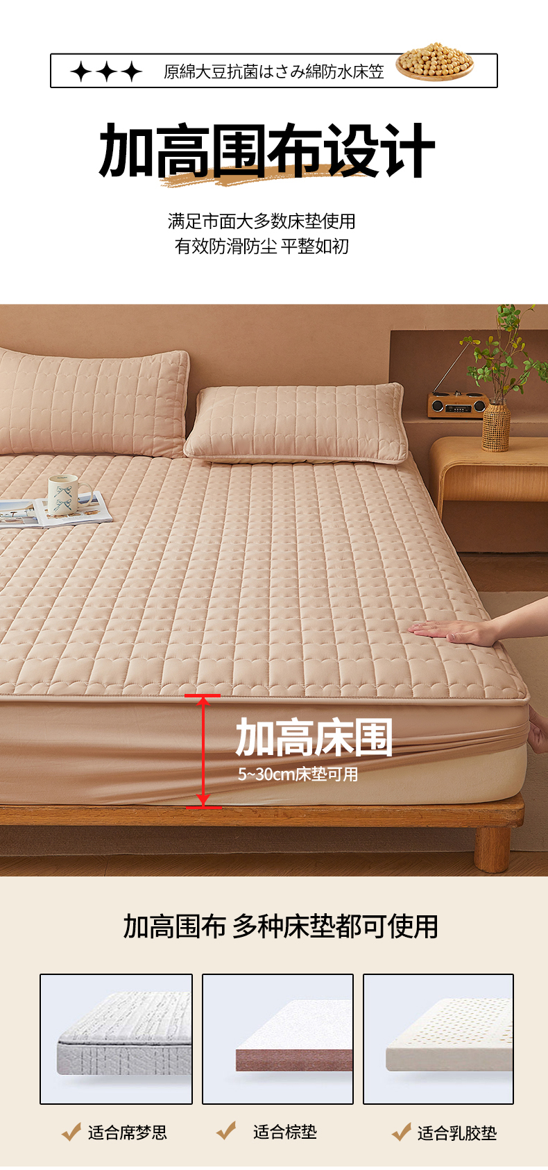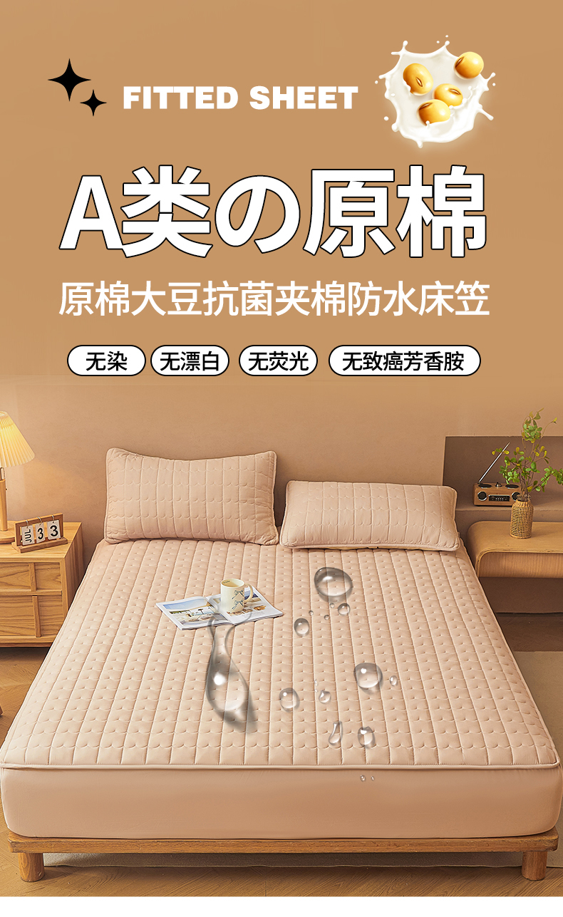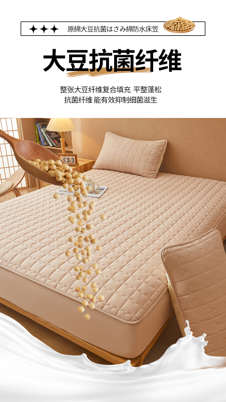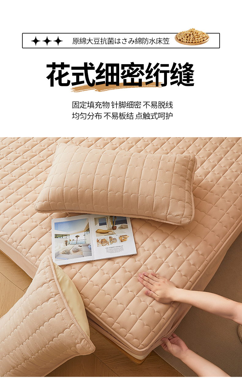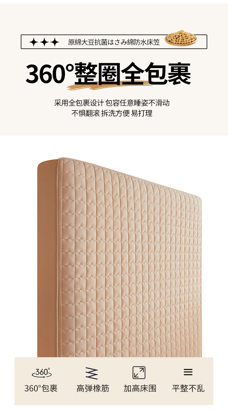 商品名称:伊人坊 2024新款原棉大豆夹棉防水床笠 原棉-浅驼色