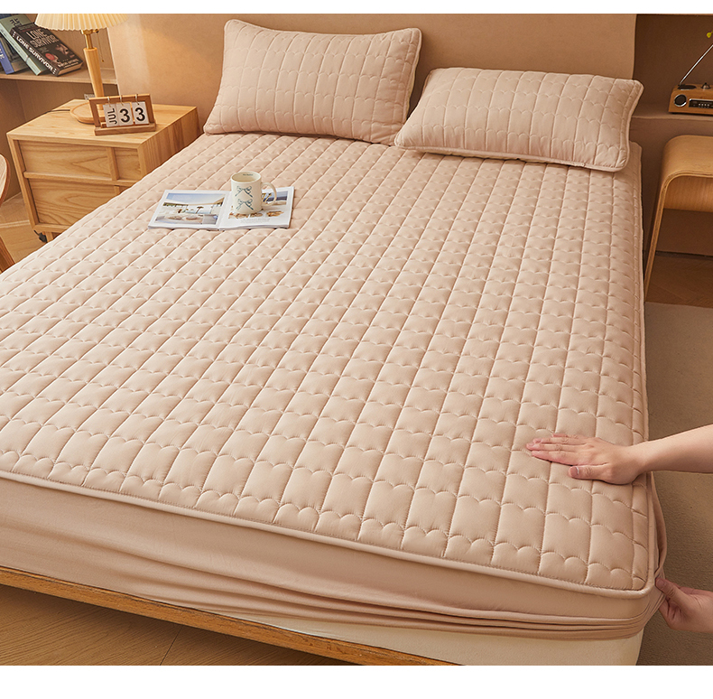 (总)伊人坊 2025新款A类水洗棉六面全包棉花夹棉床笠,爱心粉,爱心灰,爱心咖色,爱心米白,五星粉,五星灰,五星咖色,五星米白